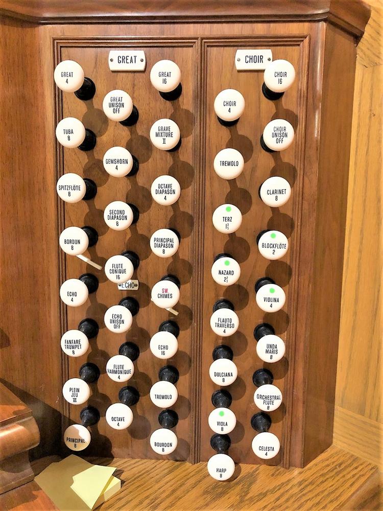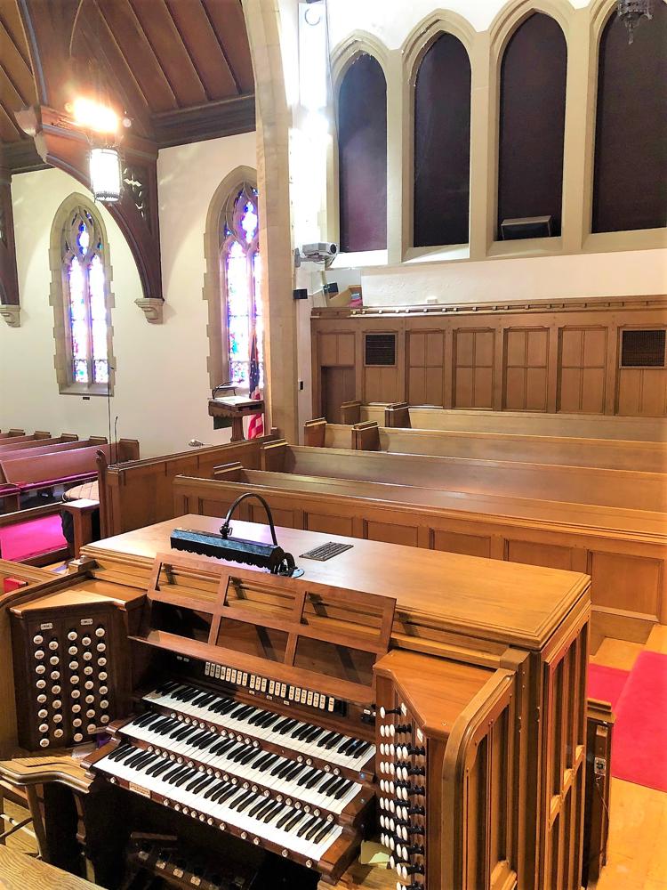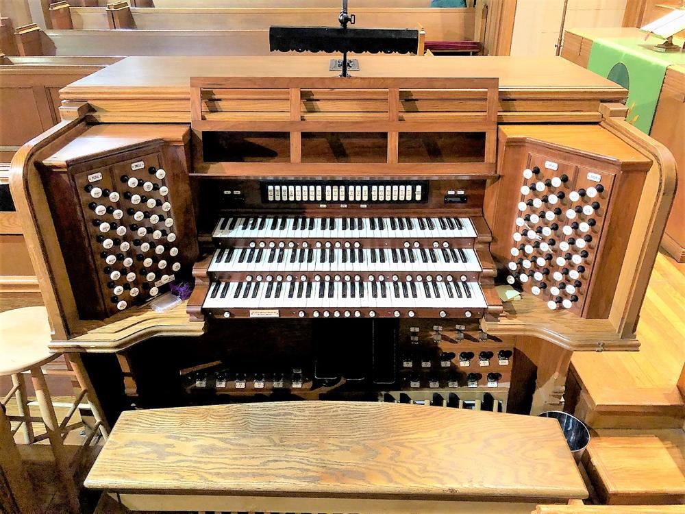 Rebuilt console for the existing organ. Identified by Harold Ulmer, based on personal knowledge of the organ.<br><br>Working in 2015 with Jonathan Ambrosino, who wrote a report on the organ 15 years ago, SDG Pipe Organs restored the console to as close to 1938 condition as possible realizing that the original combination action had been replaced by the Daffer company years earlier. Poorly cut on/off switch holes in the keydesk were covered with oak panels and a new nameboard was made to eliminate the unsightly solid state controls.<br><br>A solid state Classic Organ Works system was installed with its digital readouts hidden in a drawer. The original ivory keyboards were retained with significant cleaning and polishing as well the replacement of several damaged keys with salvaged Aeolian-Skinner keys. Harris drawknobs, coupler rails and pistons slips have been used.<br><br>The entire organ was rewired and the console raised out of its original pit location. Utilizing original A-S records for this instrument, a tonal scheme was devised and drawknobs were added to reflect future plans to complete the pipe organ to 1938 suggestions. This proposed tonal scheme includes replica chests and vintage pipework to complete the Choir and Swell divisions. There are also plans to add a free standing Echo organ in the church's rear gallery. Some vintage Aeolian- Skinner pipework has already been secured to make these additions.<br><br>As of 2016 funds are being sought to make these additions a reality. Please note that in the original specification on the OHS website the name of the church is First Presbyterian Church of York - it is actually Asbury United Methodist Church.