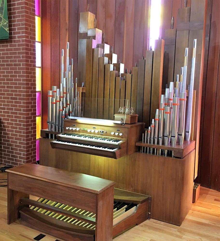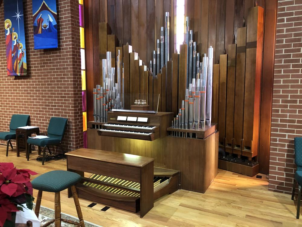 The original Gemshorn rank was replaced in April 2018 with a 58-scale 4-foot Principal rank to give it more power to support (typically Lutheran) robust congregational singing.<br>There is discussion currently ongoing to return the original Gemshorn rank on an added chest to again have a soft stop, and to replace the existing Wicks electro-mechanical switching with a solid-state/digital system and new SAM units to accommodate the additional tonal assets and to have a few general combination action pistons.