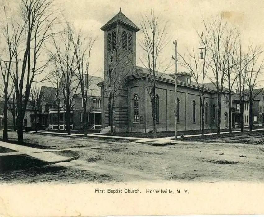 This entry describes an original installation of a new pipe organ. Identified by Scot Huntington, using information found in George Reed catalog ca. 1914.<br><br>The large brick [First] Baptist church was built in 1856. The Reed catalog opus list records a 2-manual organ for this church, and the May 1971 Boston Organ Club Newsletter adds the date and cost: $2,100; 1905. The church was destroyed by fire in the early 1960s and a new edifice erected on the site.<br><br>The 18-stop two-manual mechanical-action organ built for Holy Trinity R.C. in Greenfield, Massachusetts in 1903 cost $2,500, (now extant in the Congregational Church, Ashfield, Massachusetts), and a 15-stop tracker built in 1906 for a Catholic church in Hartford, Connecticut cost $1,750. The first known use of tubular-pneumatic action in a G.W. Reed organ was in 1908, so it is logical to deduce this was a tracker instrument roughly 15-18 stops in size.<br><br>Reed organs were well constructed, except for a propensity to build overly-thick chest tables which were prone to severe cracking. He purchased his metal pipes from Pierce in Reading, Massachusetts, his instruments were well-made and the usually excellent voicing was more reminiscent of the 1880s than the post-1900 Edwardian cigars and brandy tonal style.