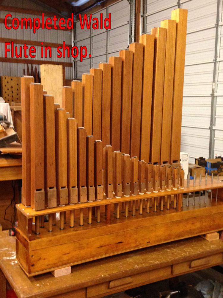 Identified by James R. Stettner, based on personal knowledge of the organ.<br><br>This was the installation of a 4' Principal new to the organ, and a 4' Wald Flute replacing the original 5:4 tapered 'Spitz Flute'. Both ranks were added to the Swell division and were recycled. The 4' Principal was of German manufacture, and had been added previously by Olympic Organ Builders of Seattle, Washington in the 1970's to the 1889 Whalley & Genung at Resurrection Lutheran in Des Moines, Washington. It was replaced there in 2011 by Puget Sound Pipe Organs. The 4' Wald Flute is the former 1954 Reuter (Op. 1097) Great 8' Melodia originally installed at University Lutheran in Seattle, Washington - and replaced there by Marceau & Associated of Seattle in 2014. It was revoiced.<br><br>The original 4' Spitz Flute is planned to be added back into the organ in the future as the Swell 2' Block Flute with the 4' extension playing as the Pedal 4' Block Flute.