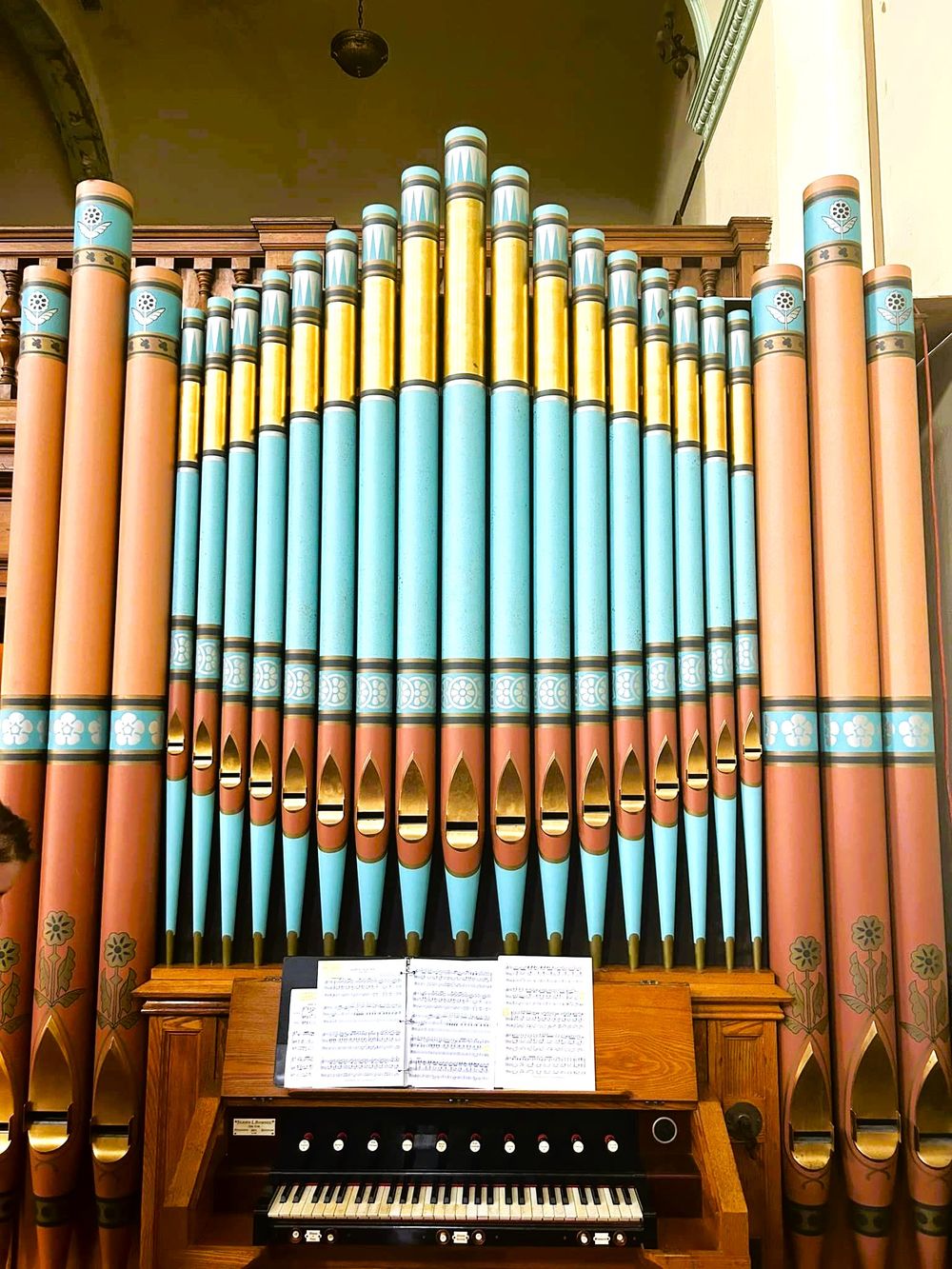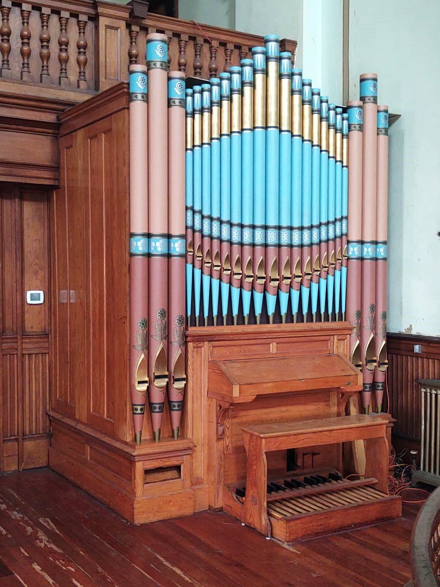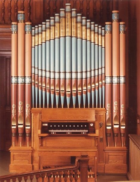 Updated through on-line information from David M Storey. -- Bellows releathered in 2008. Organ is in perfect working order.