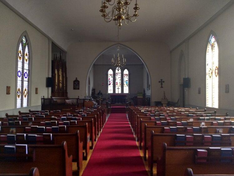 This entry describes an original installation of a new pipe organ. <br>Identified by Scot Huntington, citing information from this publication: Davis catalog.<br>An old postcard of the chancel shows part of a gothic organ case on the side of the chancel. At an unknown date in the mid-twentieth century, the organ was electrified and rebuilt. Part of the Davis case and several old ranks of pipes are identifiable in the present instrument, which is in need of work.