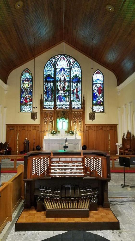 As per Douglas Cable of Guzowski & Steppe, the Schantz console was originally installed at St. Vincent Ferrer R. C. Church in New York City in 1998; it was shortly replaced there with a new console when Schantz enlarged the St. Vincent Ferrer organ in 2002.
