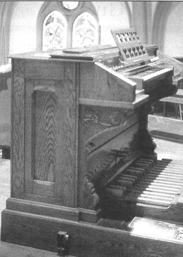 Tubular pneumatic pedal. Reversed console. Renovated 1980 by James Gruber.