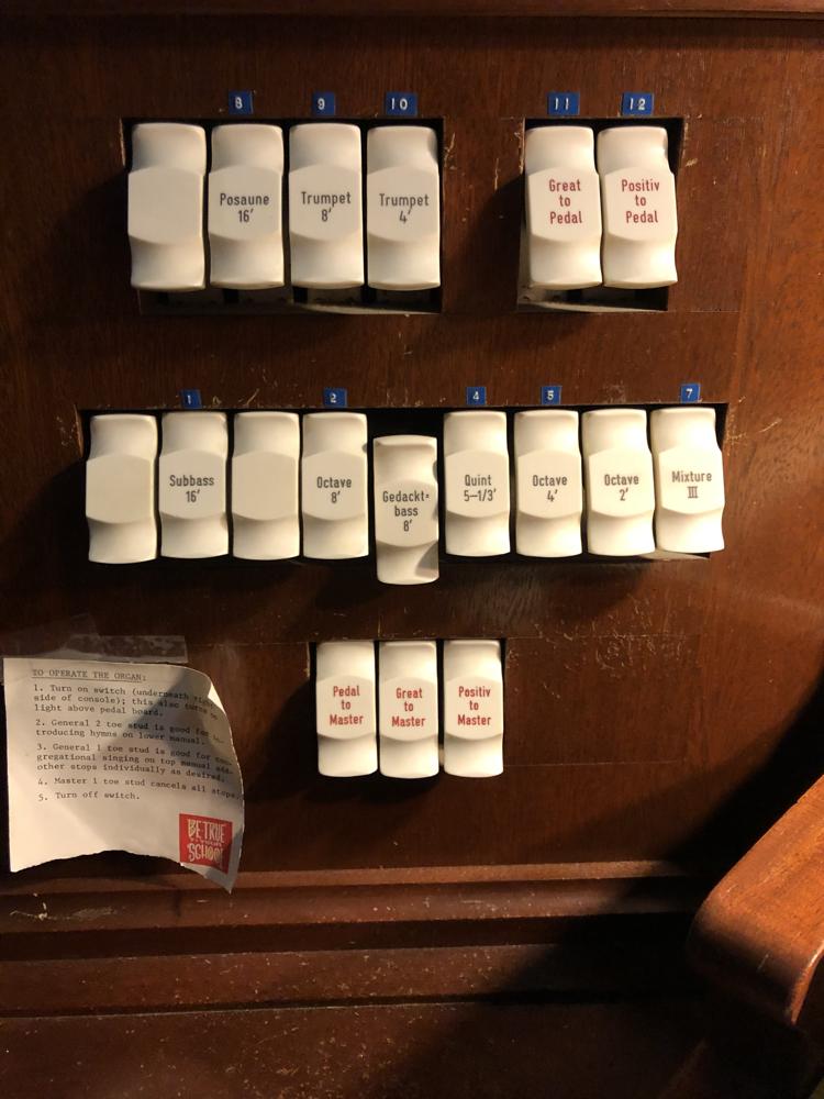 Visited the organ today (16 July, 2020) In useable condition, needs to be tuned Instrument has been tuned in the past and needs to be done more frequently as the sanctuary has no air conditioning. Flue pipework is mostly un-nicked causing a chiff in the tone of the pipes. All of the pipes (Flues and Reeds) are in good condition. The chests are in good condition as well. Electro-mechanical chests.