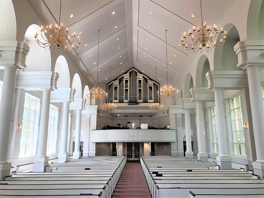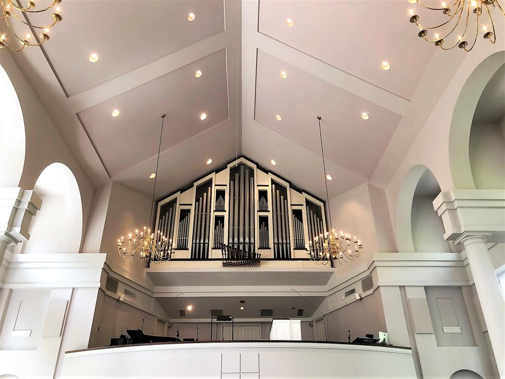 The organ was originally installed in 1972 in the church's new sanctuary at their former downtown location. That building was sold to the local government and the congregation moved to the present location in 1989, with the Schlicker installed in the gallery in a new case. Phil Parkey installed a new console in 2005. In 2019, R A Colby renovated the organ, adding a new console and Walker digital stops.