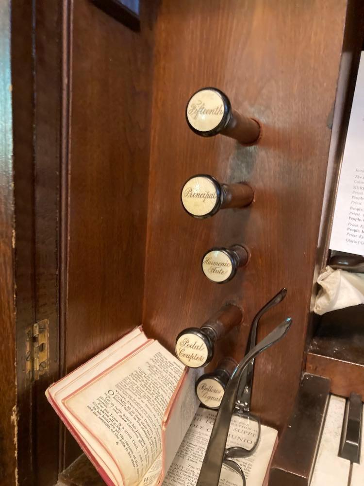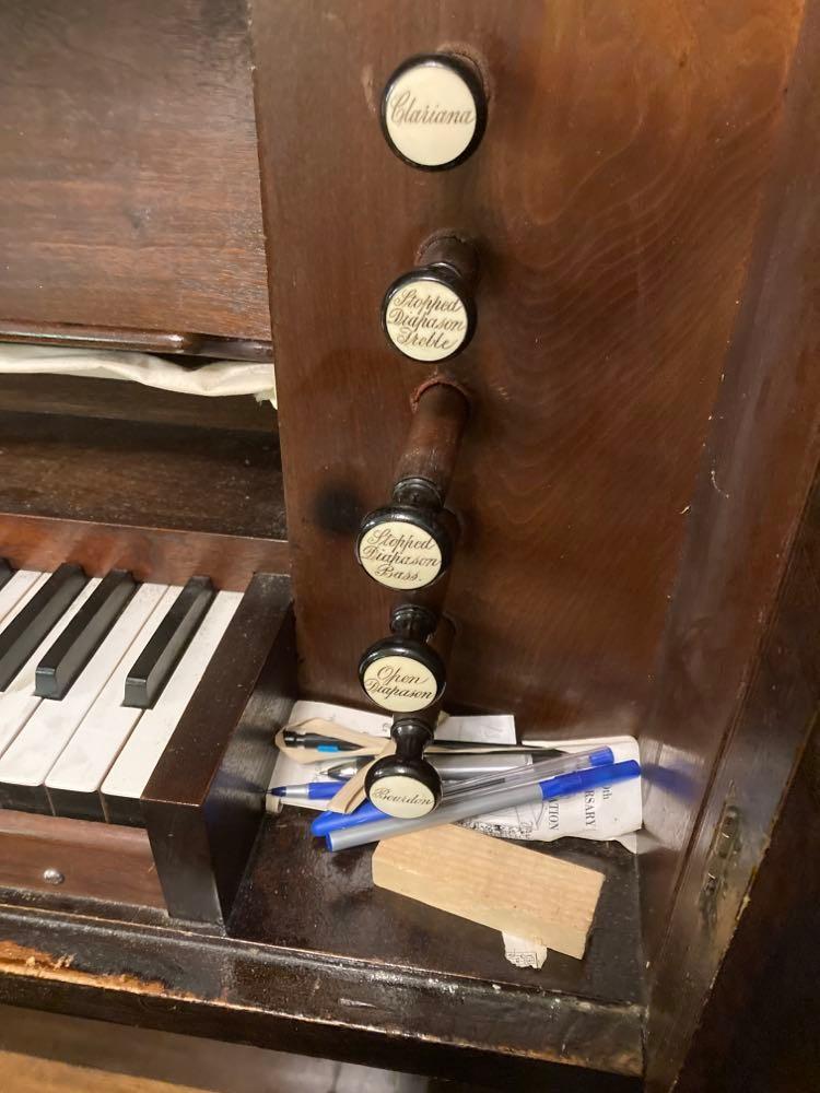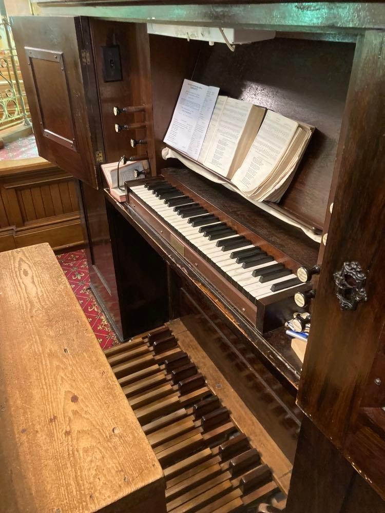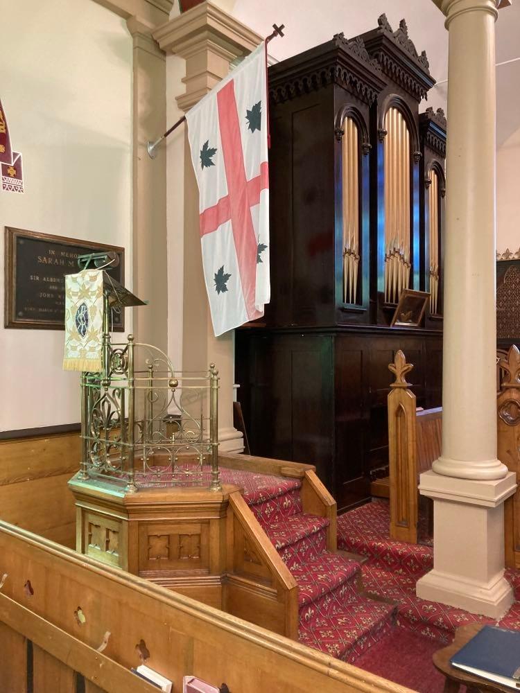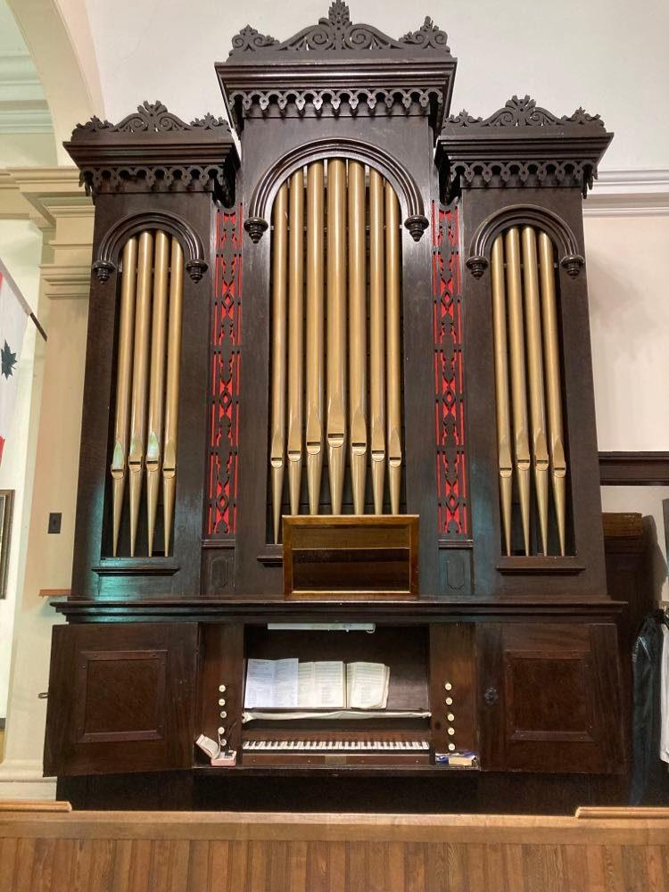 Trinity Anglican was built in 1840 and consecrated August 21, 1843 by John Inglis, Lord Bishop of Nova Scotia. The first organ was brought from England in 1845 and the present organ was installed in 1870. In 1959 the organ was overhauled by an organ builder from England. The choir and organist from Saint George’s Church, Moncton, came to Trinity for the rededication service. The chancel was enlarged in 1868, completely refitted in 1880 with a credence bracket, lectern, a new chancel carpet and a more appropriate Holy Table. Also in 1880 the women’s guild donated funds to erect a stone fence and a new bell, placed for Christmas that year, from Baltimore. The rector’s engineering son drafted the tower alterations and the parish men executed them. The bell performed a dual role; it called people to worship and alerted the town of any fires. -- church website