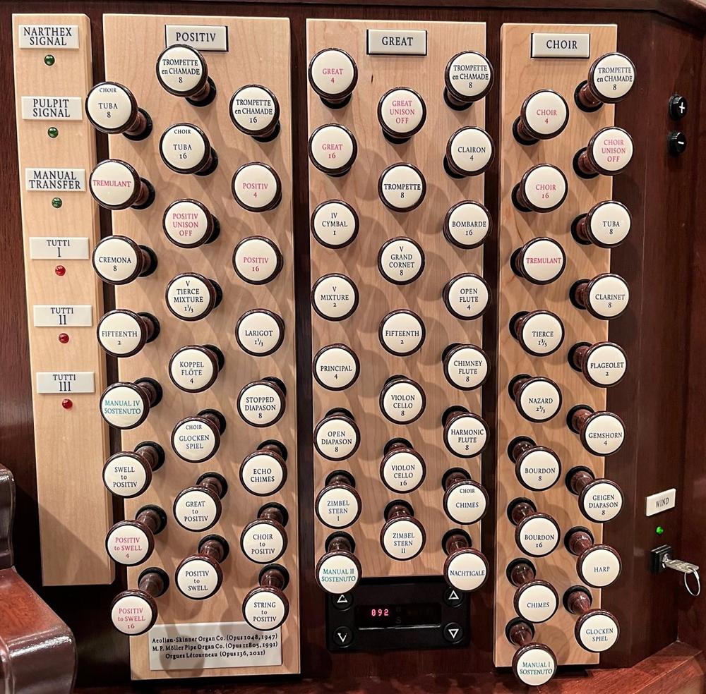 Approximately 20% of the pipework is from the previous Aeolian-Skinner and Möller organs.
