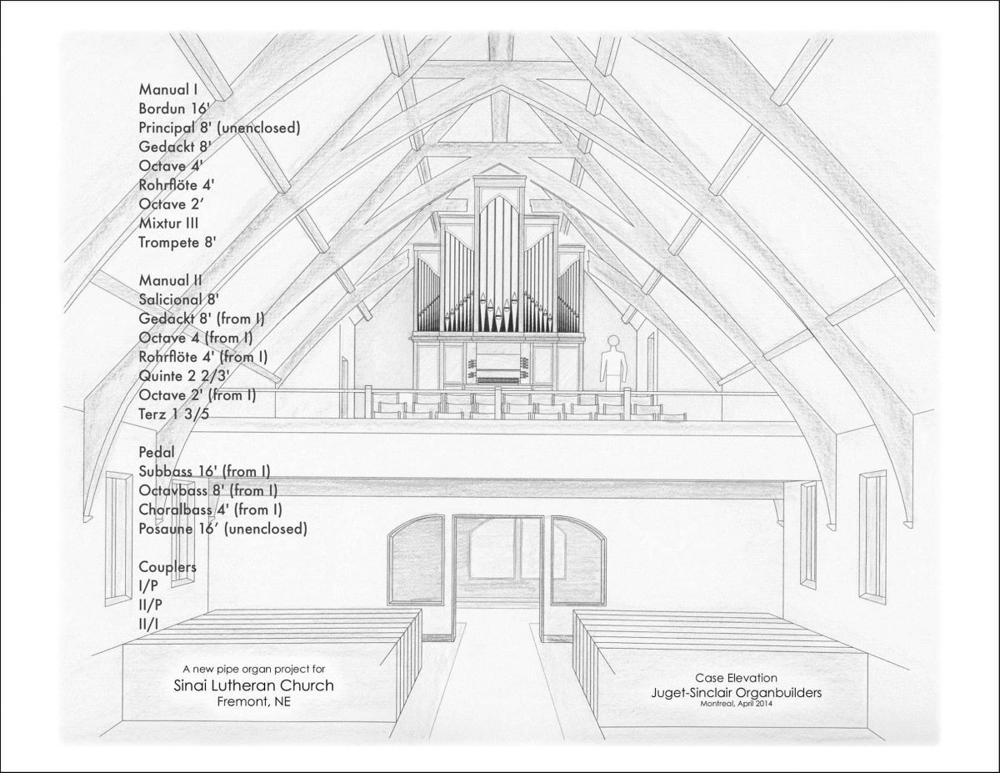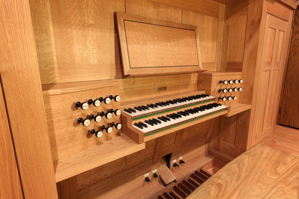 This entry represents the installtion of a new pipe organ. Identified from the builder's website. It replaced a 1969, 2-6 Moller 'Artiste' which was relocated to a Lutheran church in Minnesota. Bullet points from the builder's website: Shared stops between Man I, II & Pedalboard playable simultaneously All pipework enclosed except Montre 8' & Trbn. 16' 56 note keyboards with bone naturals and ebony sharps 30 note concave pedalboard Mechanical key action Mechanical stop action Cuneiform bellows White oak casework