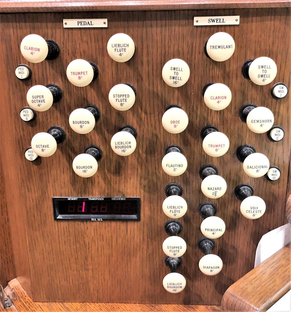 3 Manuals (61 Notes)32 Note Pedal4 Divisions40 RegistersElectrical Key ActionElectrical Stop Action✓ Crescendo✓ Combination Thumb Piston(s)✓ Combination Toe Piston(s)✓ Coupler Thumb Piston(s)✓ Coupler Toe Piston(s)✓ Sforzando Thumb Piston(s)✓ Sforzando Toe Piston(s)