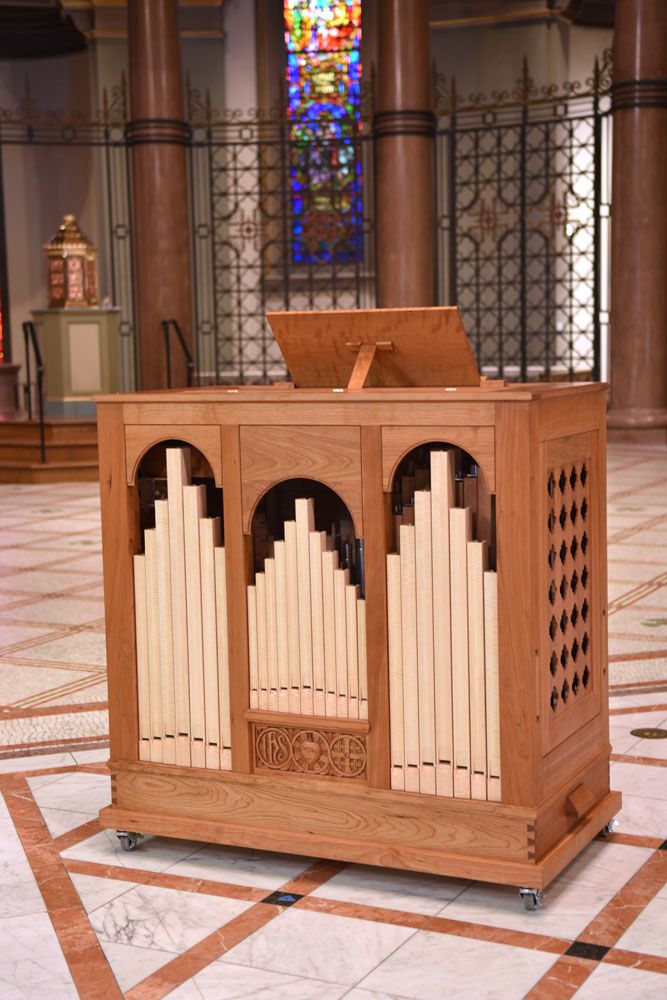 This entry represents the installation of a new organ. This is a Positiv continuo organ, and meant to be played from a standing position. It is part of a comprehensive organ project which includes a new 2-manual Juget-Sinclair in the ambulatory (Opus 54, 2022), and a new 4-manual Juget-Sinclair rear gallery organ to be installed in 2024 (Opus 55).