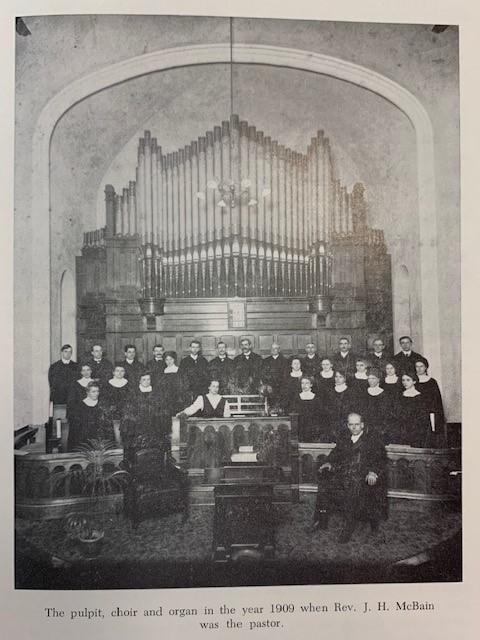 From *Central United Church: 100th Anniversary, 1862-1962*: "The double-manual organ installed at this time was purchased from the Karn Organ Company of Woodstock. It had been acquired by that company when they installed a triple-manual instrument in a Toronto church. The price, installed guaranteed for one year was $4,000."