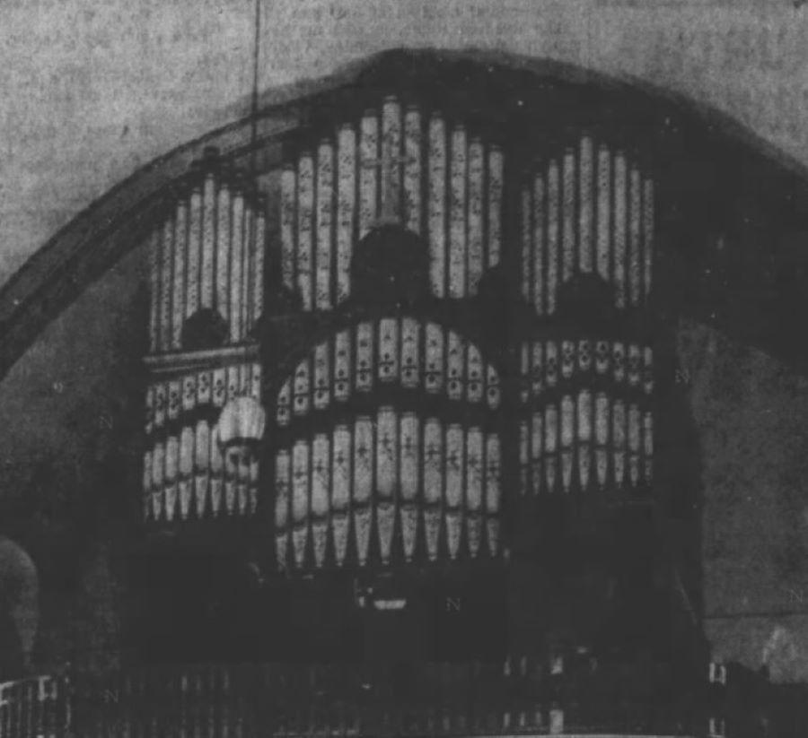 The *Chippewa Herald-Telegram* for July 27, 1893 states that the organ, installed in 1893, was built by the Jackson Pipe Organ Company of Chester, IL with 1766 pipes at a cost of $3000.