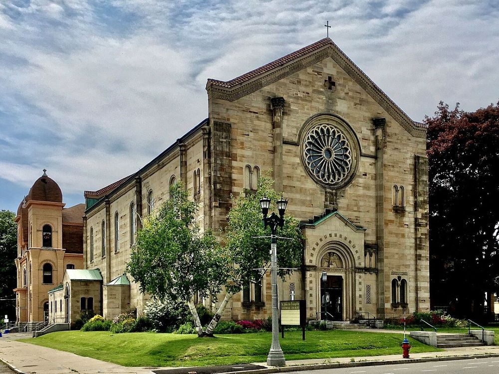 A June 2020 note in Wikimedia states, "The parish endured until 2009, when it was dissolved by the Diocese as part of its "Journey in Faith and Grace" consolidation; since then, it's been the subject of two different plans for redevelopment: it was purchased from the Diocese in 2014 by local investor Stephen DeFalco who envisioned it as home of an event space he dubbed "The Church", but was resold two years later to Hook & Ladder Development, a group that's earned renown for its work on and around Seneca Street and which plans to convert the building to apartments and commercial space, possibly including a craft brewery."