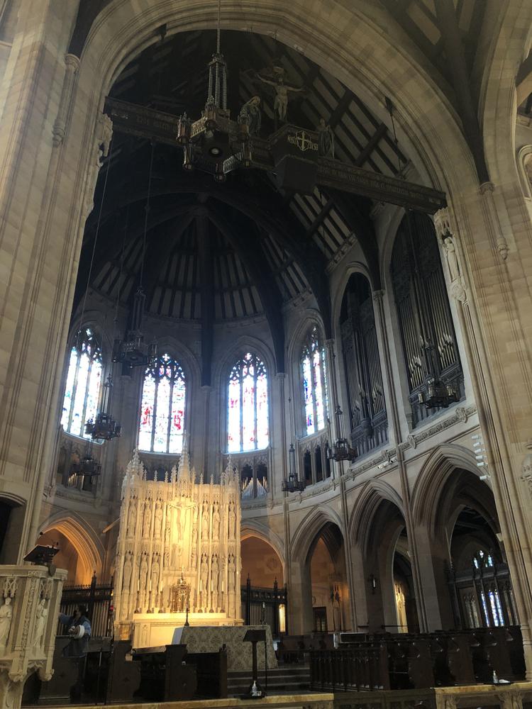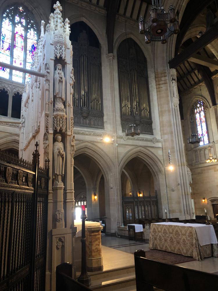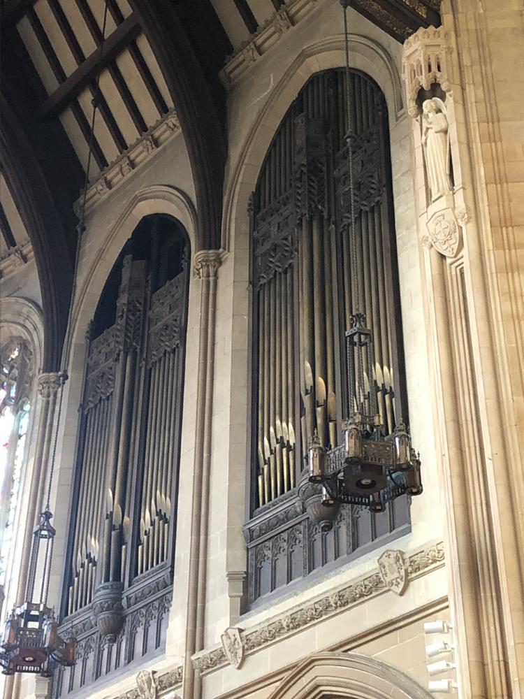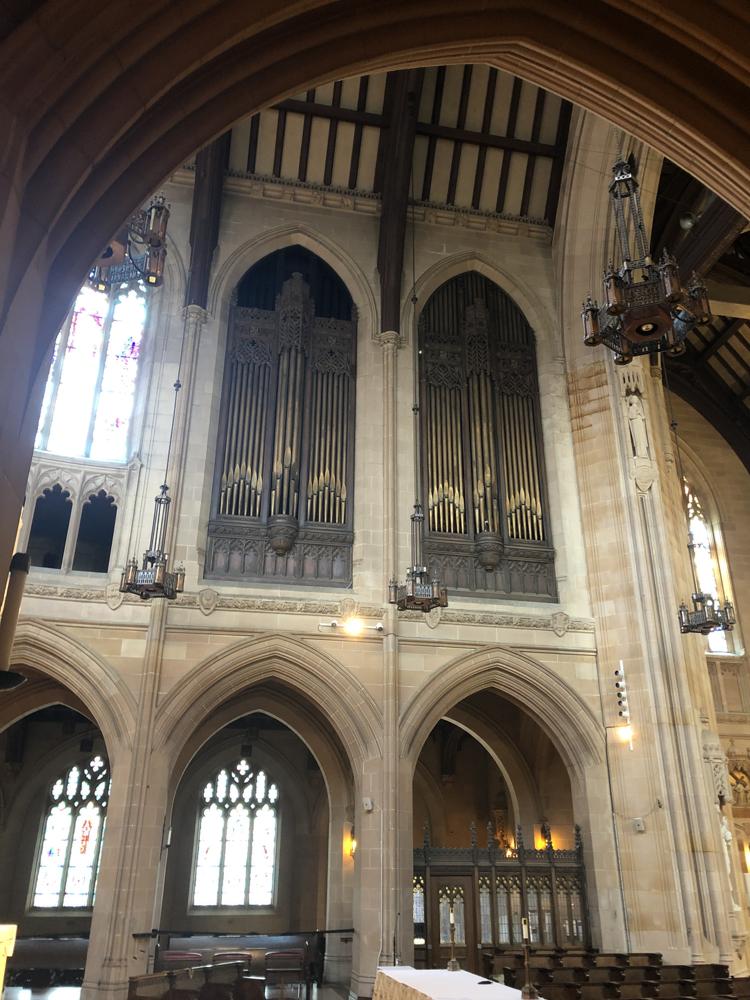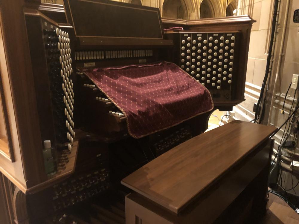 I used to take care of the current instrument at this church. The present enormous 4m console is for a 25-rk hybrid organ installed by Harrah. The "facade" seen behind the reredos is for the instrument controlled by the 4m console. That pipe work and its chests are by Rufatti. Neither the console nor the pipes seen behind the reredos are associated with the Woodberry/Estey organ. Information received online from Don Daley on 2025-08-14