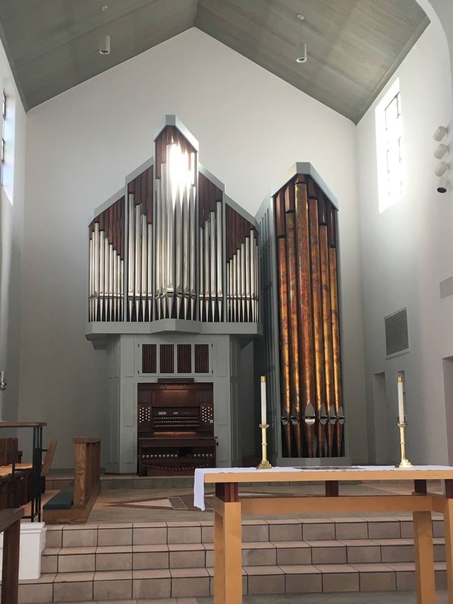 From the parish website: "On September 18, 2017 John Nordlie, an internationally renown pipe organ builder from Sioux Falls SD began the installation of his Opus 27 organ in the Chancel of Holy Trinity church. The organ was originally designed and built for Faith Lutheran Church of Prairie Village KS and installed there in 1997. However, the congregation of Faith Lutheran sold its building to the city of Prairie Village for the purposes of creating a public park on the site. Fortunately, Holy Trinity was able to acquire this fine instrument from its previous owners since its size and design was exactly suited to the space, acoustics, and needs of Holy Trinity."
