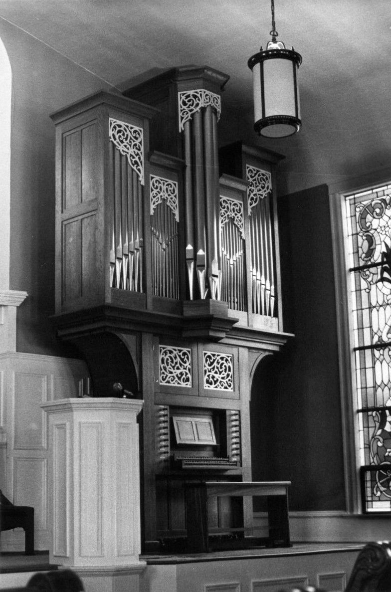Built 1979-81. Mechanical stop action. Has 2 large wedge bellows which can be foot pumped by assistant or filled with electric blower.