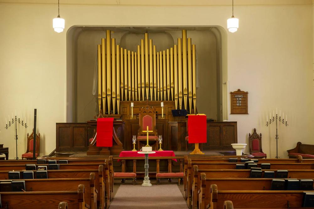 Slider chests. Church previously had an 1898 Steere & Turner Op. 444. [Rebuild of Steere & Turner from Newtonville [VT?] Masonic?]