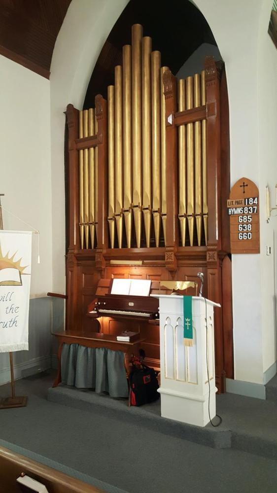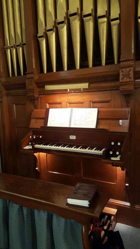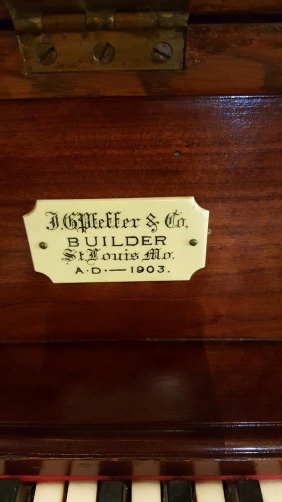 On-line update from Barry Bierwirth -- I visited the church in mid August, 2005. It had been restored in 2003 by a restorer from Iowa, I think it was. I had played the organ years ago and the key action was very noisy, the wind was poor, and the organ was out of tune. This time, several weeks ago, the action was beautifully quiet, it was in perfect tune even in the upper octaves on the 4' and 2' stops. It is used each week and appreciated by the people. Happily, they intend to keep the organ! The church is of brick, and sits along a small 2-lane road nearly in the cornfields, as is the case with many an Illinois rural church.