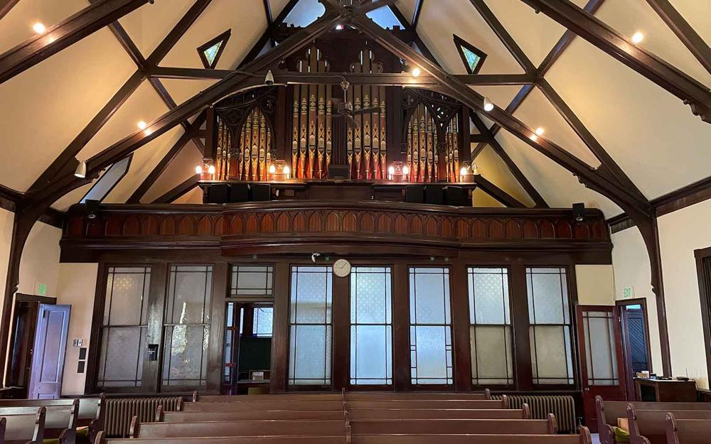 Updated through online information from Steve Bartley. -- This organ was cited in The Baltimore Sun Paper 06-06-1890; Volume: CVII; Issue: 18; Page: Supplement 1, in a lengthy article about the town of Catonsville and the organ in the Presbyterian church as having come from Brown Memorial. The organ had been built by Hall & Labaugh for Brown Memorial Presbyterian, Park Ave., Baltimore in 1869. Brown replaced the Hall organ with a Steere organ in 1889. The original Hall organ was larger than the present organ and some large pedal ranks were not installed. Additionally the original case was divided in half and each half was placed in the balcony in such a way as not to block the large window. The Christadelphian church had been built as Paradise Presbyterian, later named Catonsville Presbyterian.