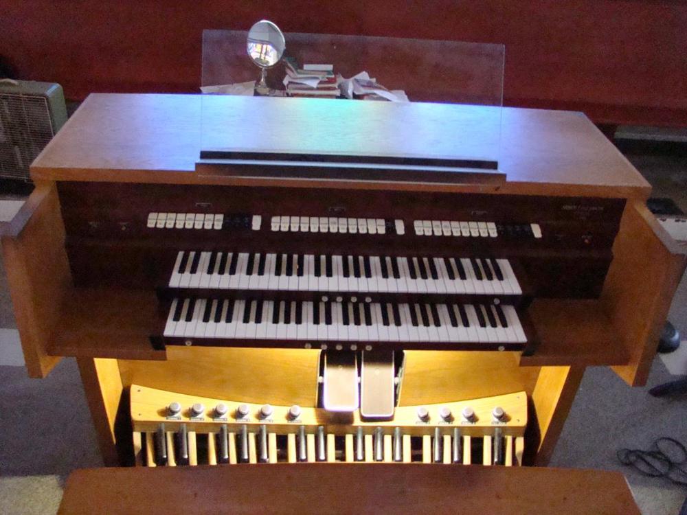 Updated through online information from Steven Ottományi. -- The two-manual and pedal console faces the rear of the church and has stop tabs and no rolltop. The pipes reside in two chambers recessed into the slightly canted rear wall, with minimal grills covering the openings. The tops of each chamber are angled at 45 degrees to aid sound projection. Facing the back of the church, the Swell division is in the left chamber and the Great and the independent Pedal stops are in the right chamber. In spite of the depth of the chambers, projection is excellent into the nave thanks to extremely favorable conditions: marble wainscoting on all walls one fourth the way up to the ceiling; the rest of the walls are cement, sealed and painted white. The coffered ceiling rises eighty feet above the floor of the nave in the center, and approximately seventy feet at the walls. Inside the recessions in the ceiling are multi-colored ornamented, sound reflective tiles. Stained glass windows are proportionately narrow. The solid cement floor is covered with Terrazo, except for the Altar platform and Sanctuary floor, which is marble. Two shallow transepts in the front of the church cause little disruption in sound dispersal. Seating capacity is 1,200.