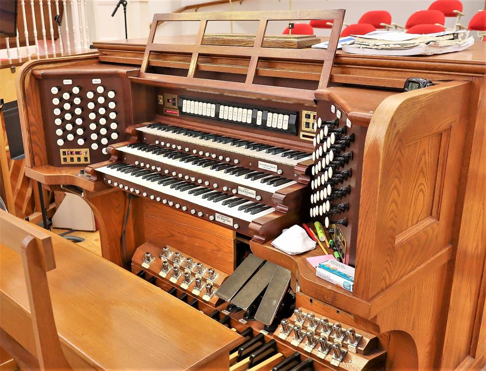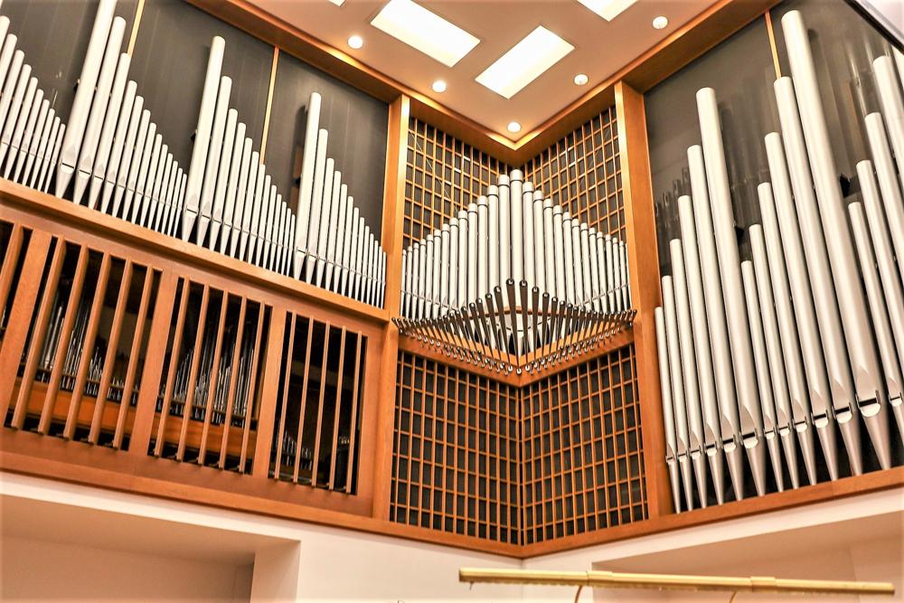 In new building. Probably EP. Rebuild and enlargement of previous organ from old building which contained pipework and components from Pilcher and Aeolian-Skinner.
