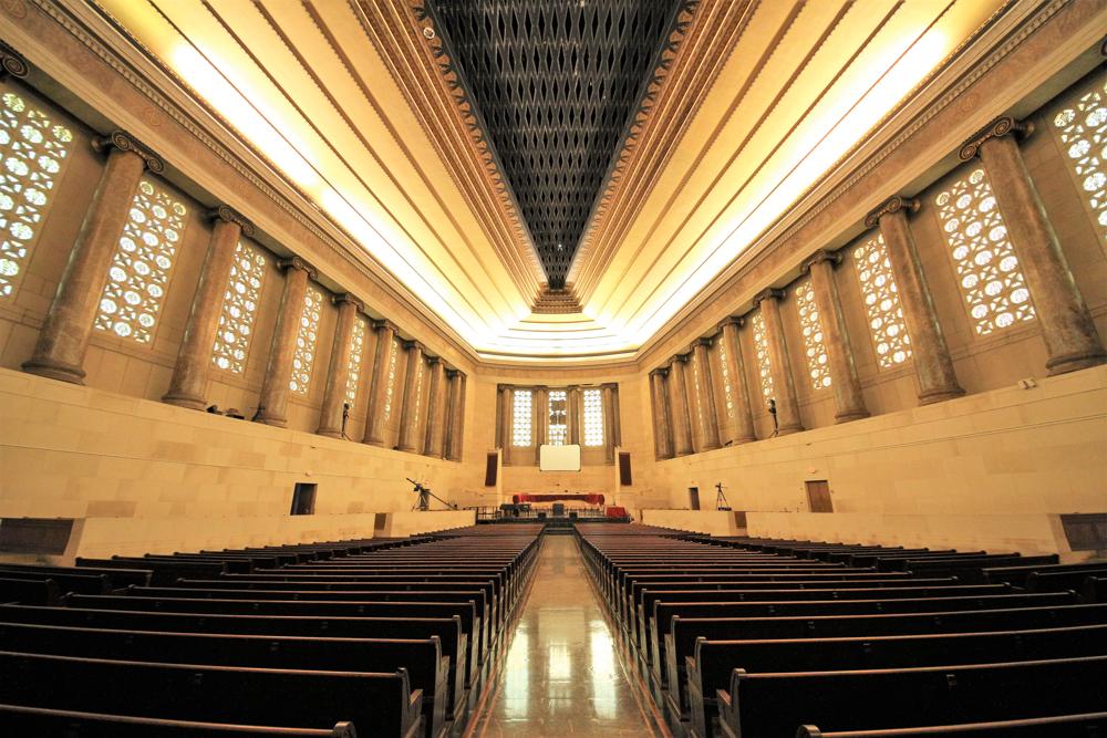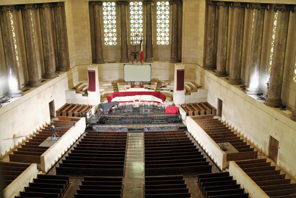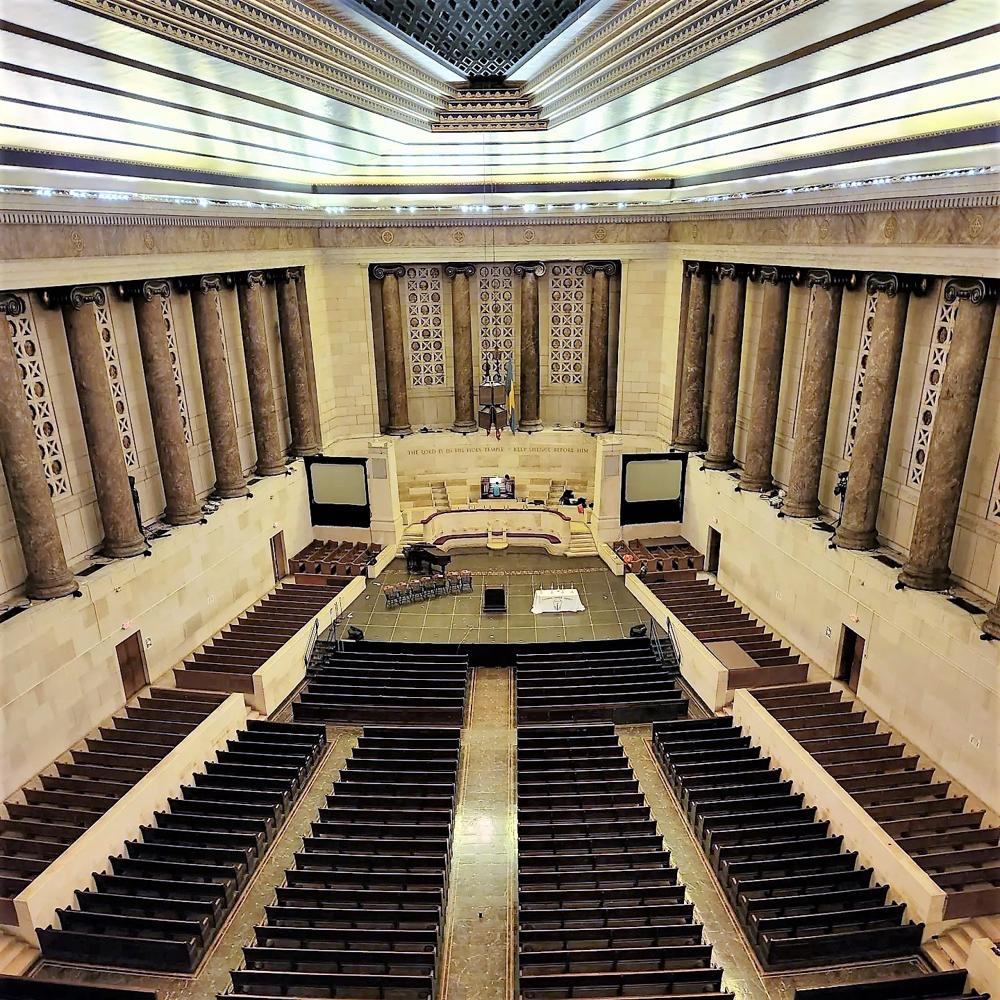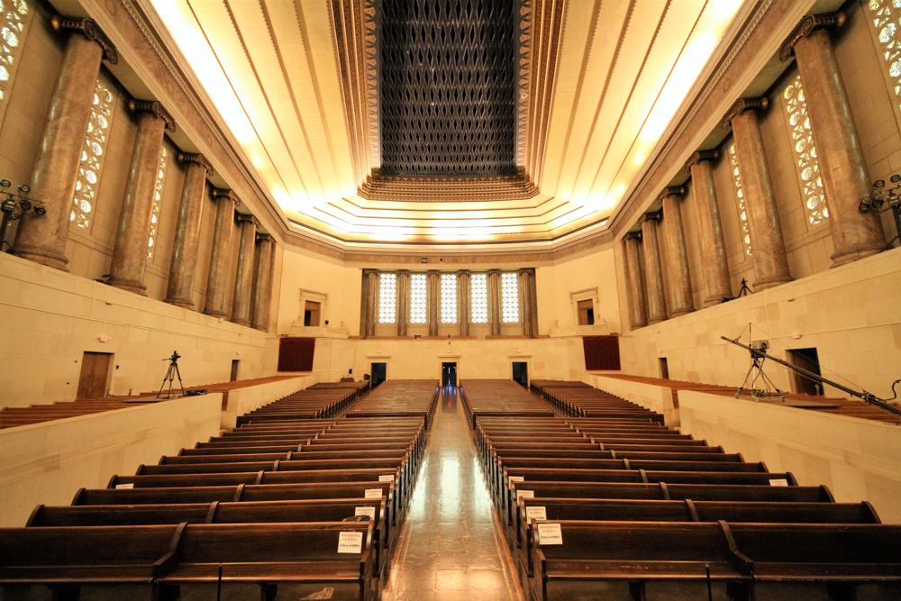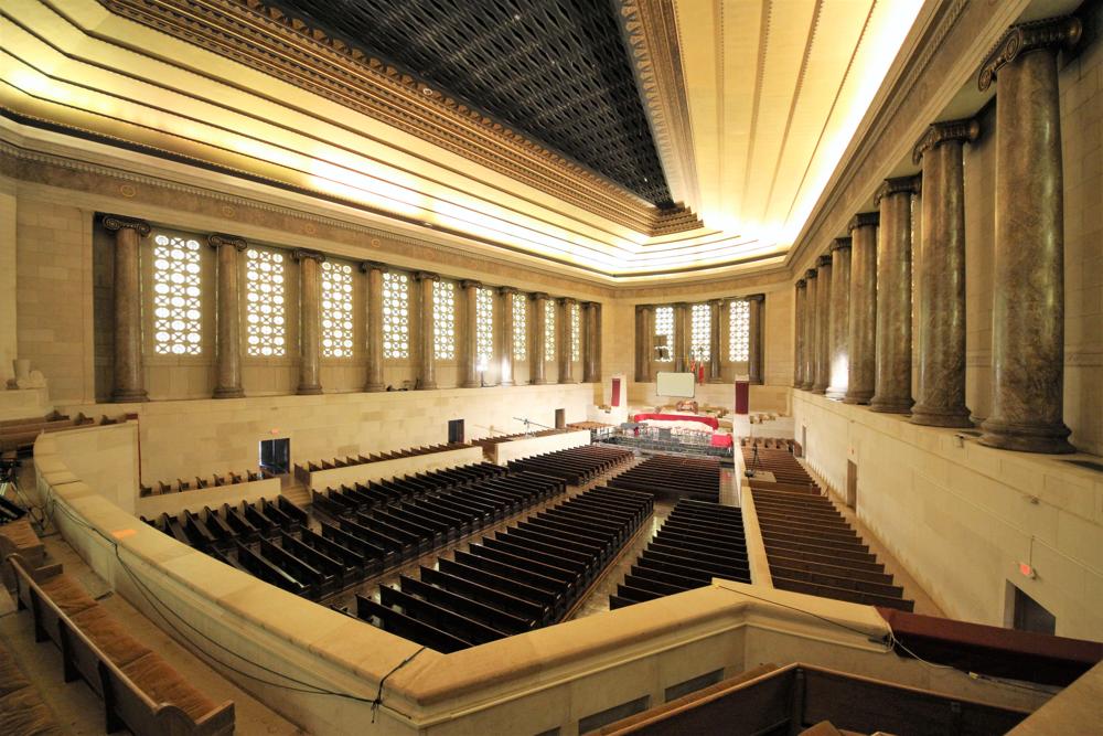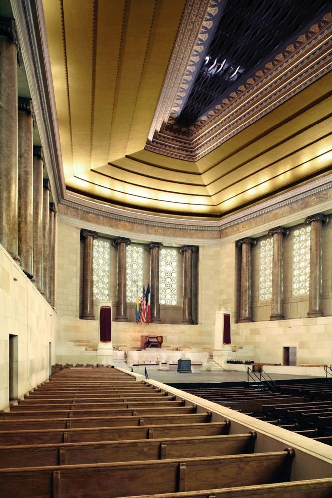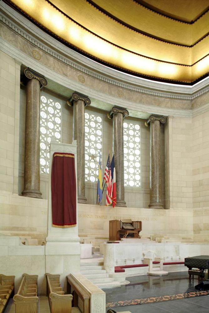 Updated through information posted to PIPORG-L March 9, 2008 by Nathan Smith: -- "I had the honor of tuning the pipes of the Girard instrument for the last five years up until I relocated to NY last fall.<br>Although there are modifications to the voicing and missing/replaced mixture ranks in places, the vast majority of the organ is more-or-less there. The Solo Tubas have been goosed and "Frenchified", there are two ranks that have been simply swapped around, and several soft ranks that have been ruined at some point, their beards plucked and/or mouths cut-up with what could only have been fingernail clippers. It is also reasonable to assume the reports of the 32' Bombarde having been loudened as it is a real rip-snorter; pretty out of character for a Wood-bassed rank of its kind. The poor Tuba Mirabilis still sports the hooks and supports that were soldered all over it to hang it upside-down, though it now rests on its side grazing the chamber ceiling opening. Most of the conical reeds were fitted with slides that have a habit of falling down, ... . <br>The organ chambers and surrounding attic are probably one of the coolest organ-spaces on earth."