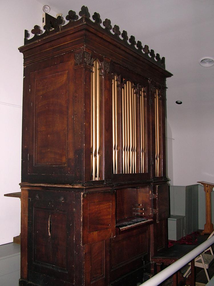 Updated through information received via e-mail from Larry Pruett: "The organ is now housed in the Union Meeting House in Marietta, PA in the rear of the 3-sided gallery. The building was built in 1814 and is now maintained by the non-profit Marietta Restoration Associates. <br><br> The organ was scattered on 3 floors of the old Zion AME Church in Hollidaysburg when we found it about 15 years ago. Restoration was done by myself and my partner William Duck over a period of years and we donated the organ to the Union Meeting House in June of 2008. <br><br> It is difficult to find a good, secure home for small one manual organs with no pedal these days and we knew that Marietta's Union Meeting House would be the perfect place for it. The Union Meeting House is used for weddings, parties and other social functions these days. It was originally built as a meeting place for all of the protestant congregations of Marietta. As each group became able to build their own houses of worship, the Meeting House fell into disuse. It was restored with funds raised by Marietta Restoration Associates during the 1970's.<br><br>It sounds fantastic in the room, which has a barrel vaulted ceiling."