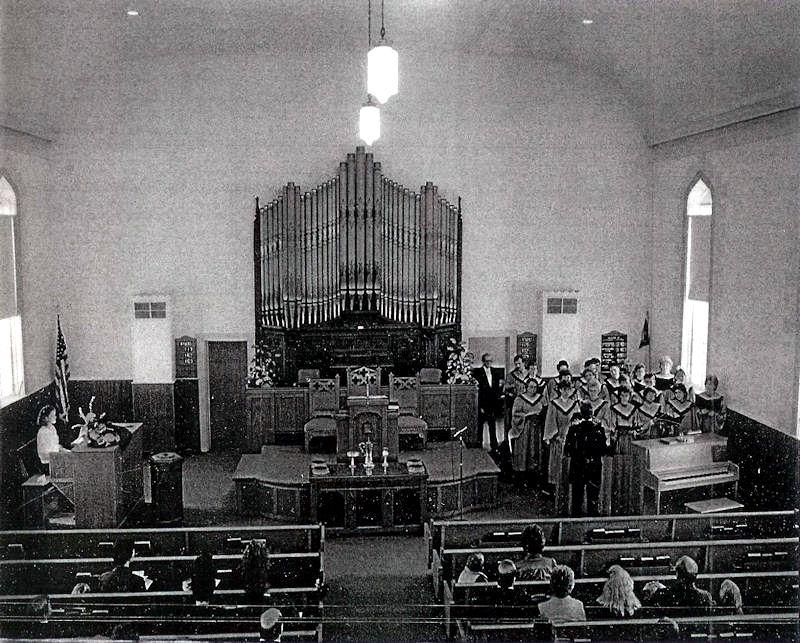 Updated through on-line information from Chad Boorsma -- Exposed pipes are painted and include stencil work from the 1905 original installation by the Hinners Organ Company.
