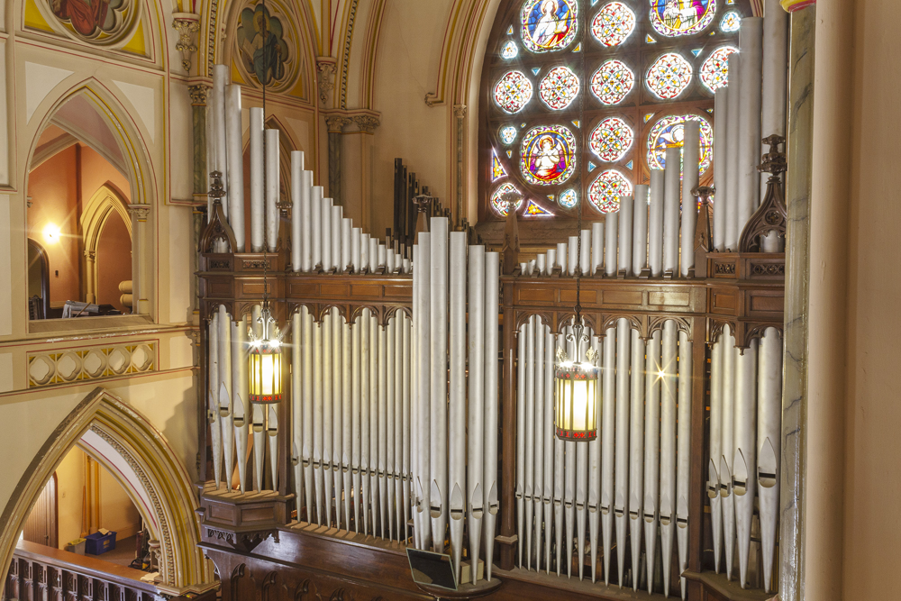 Updated through online information from Michael Berman. -- Instrument altered by Schultz and Associates in 1980s, alterations being reversed beginning in 2006, continuing into 2007. Total number of ranks will likely return to original, and at present, fewer stops are playing as restoration continues by organ technicians volunteering time to save the organ.