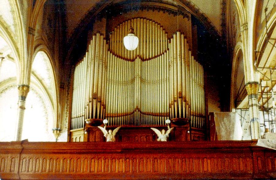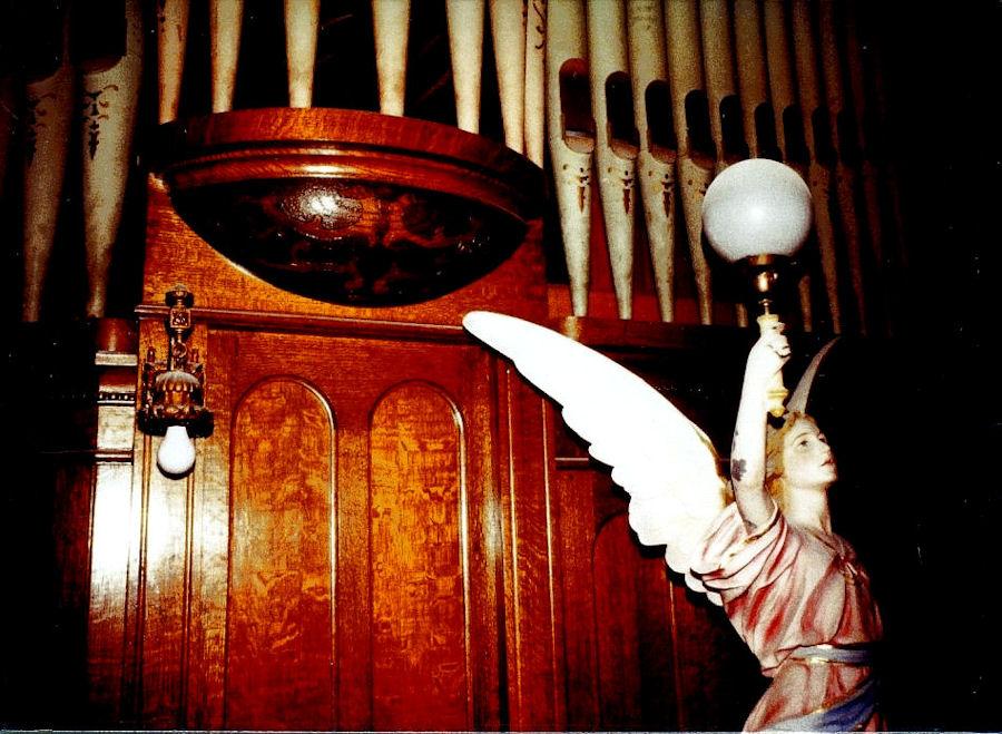 Updated through on-line information from Michael A. Way. -- I do not differ with any of the database's information. My notes however do include a Trumpet 8' in the Swell. Not sure if that still exists, however; the organ was unplayable at the time of my visit (fall of 1975). When we arrived we were shown to the gallery and found a crude assemblage of unfinished 2x4's screwed right into the closed key-covers fashioned into a sort of shelf that we were told had held an electronic organ speaker of some sort. I removed the 4" long wood screws that attached this "shelf", defacing the oak desk-jambs and folding cover and opened the keydesk for the first time since the 50's or 60's reportedly. The priest with us gasped and exclaimed that he "...had no idea what was under there!" Not long after that I was told that a drive to restore the instrument was underway. I later was invited to attend the re-dedication recital in 1984 after Quimby's excellent restoration. The sound was delightful and warm, characteristic of Hinners' top-notch work of that period. I do not know if I can take any of the credit for spurring that clergyman, who was graciously escorting us that day, into action to revive the organ but, I like to think I did. (Note: My pictures also show two large floor-standing "angel" light fixtures that flanked the keydesk which do not appear in the church's web-site slide show.)