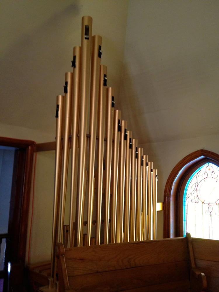 Updated through online information from Jon Busch. -- Originally installed in 1958 at 1st Lutheran of Boston. Enlarged in that church in 1978. Enlarged again for its present install by Wicks using mostly recycled pipework. When purchased it was 20 ranks, all Wicks. One original rank was discarded and 11 ranks added from various makers. Swell: 3r mixture, OSI. Gedeckt, Wirshing. Vox Humana, Hillgreen Lane. Mutations, Wirshing. Spitzprincipal, Stinkens. Great: 4ft Koppelflote, Austin. Spitzflote celeste, Wicks. Antiphonal: Processional trumpet (Bombarde), Trivo.