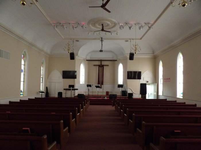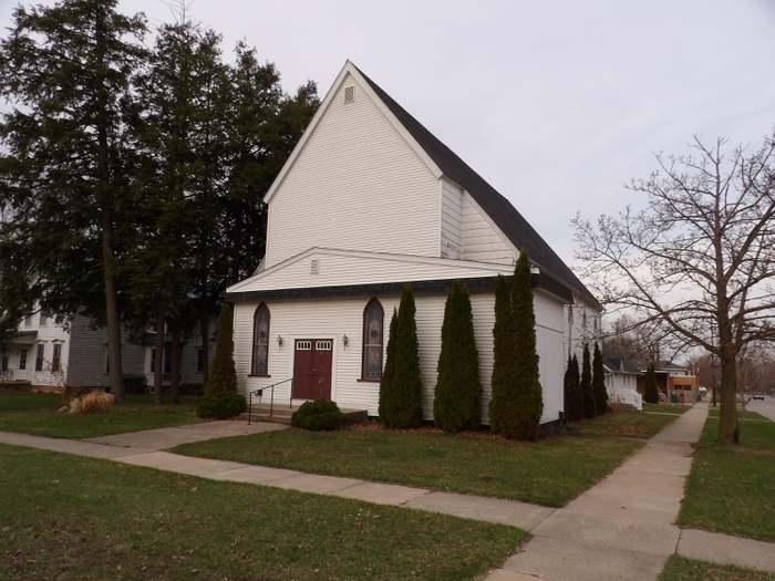 The news piece discussing the home/crawlspace where the organ's wood remnants were found also showed what looked like a church building across the street from the home. Turns out this church is at 204 S Division Str, supposedly built ca. 1870, and an interior photo shows the exact chancel where the organ was originally installed.