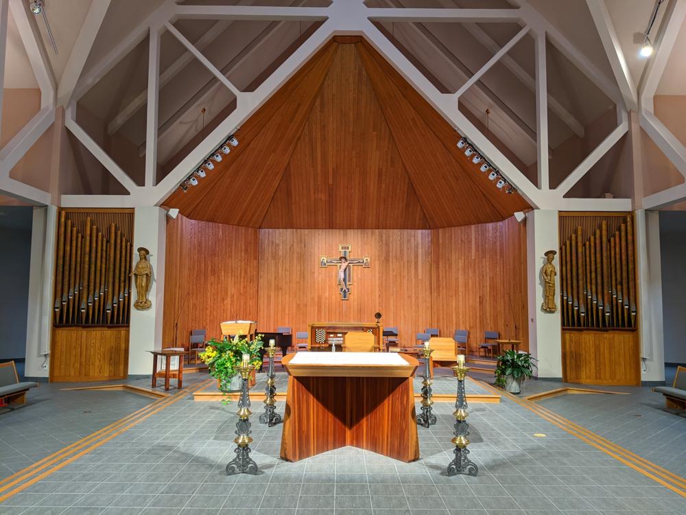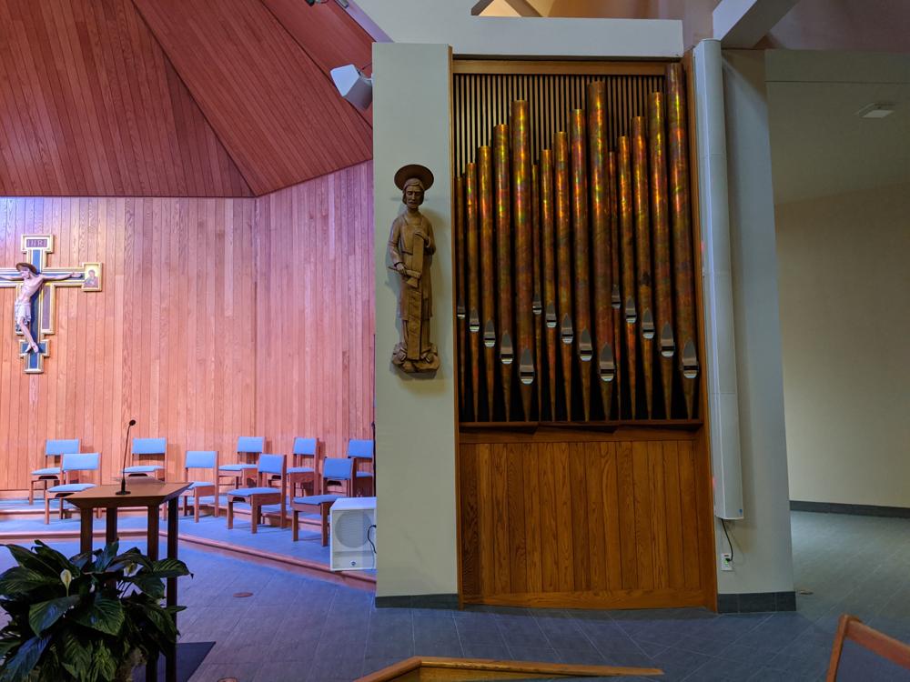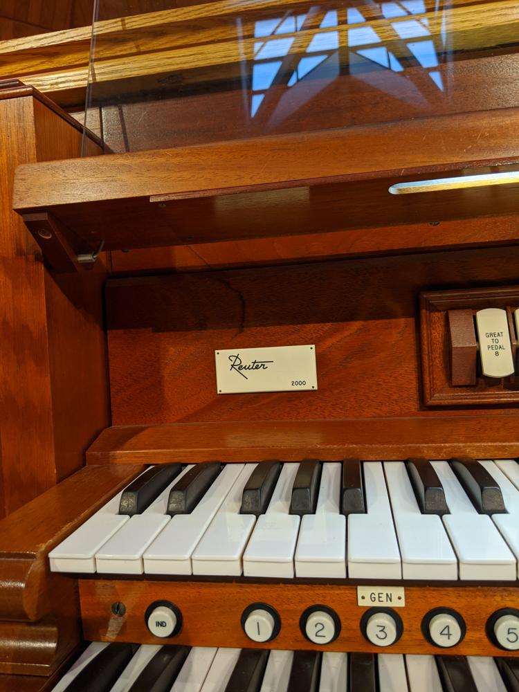 The organ was installed in December of 2000. The organ is located in chambers on both sides of the chancel with each chamber having two sound openings -- one facing the choir and the other the nave. The Great and Swell divisions are on opposite sides with the Pedal ranks divided across both sides. Pedal principal pipes, made from flamed copper and framed with oak casework, create the facade.
