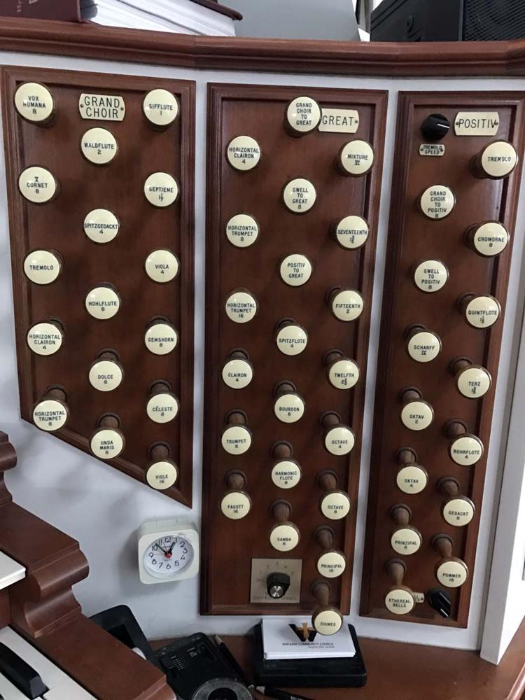 4 Manuals 32 Note Pedal5 DivisionsMechanical (Unknown) Key ActionElectrical Stop Action✓ Crescendo✓ Combination Thumb Piston(s)✓ Combination Toe Piston(s)✓ Sforzando Thumb Piston(s)