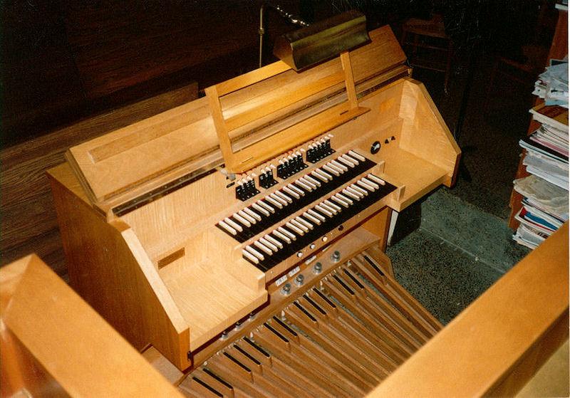 Updated by James R. Stettner, who has heard or played the organ. <br> <br>The console had a folding cover which when opened allowed a separate music rack to be flipped-up into position. The organ did not have mechanical key action. It is slider chests with electric pull-downs.
