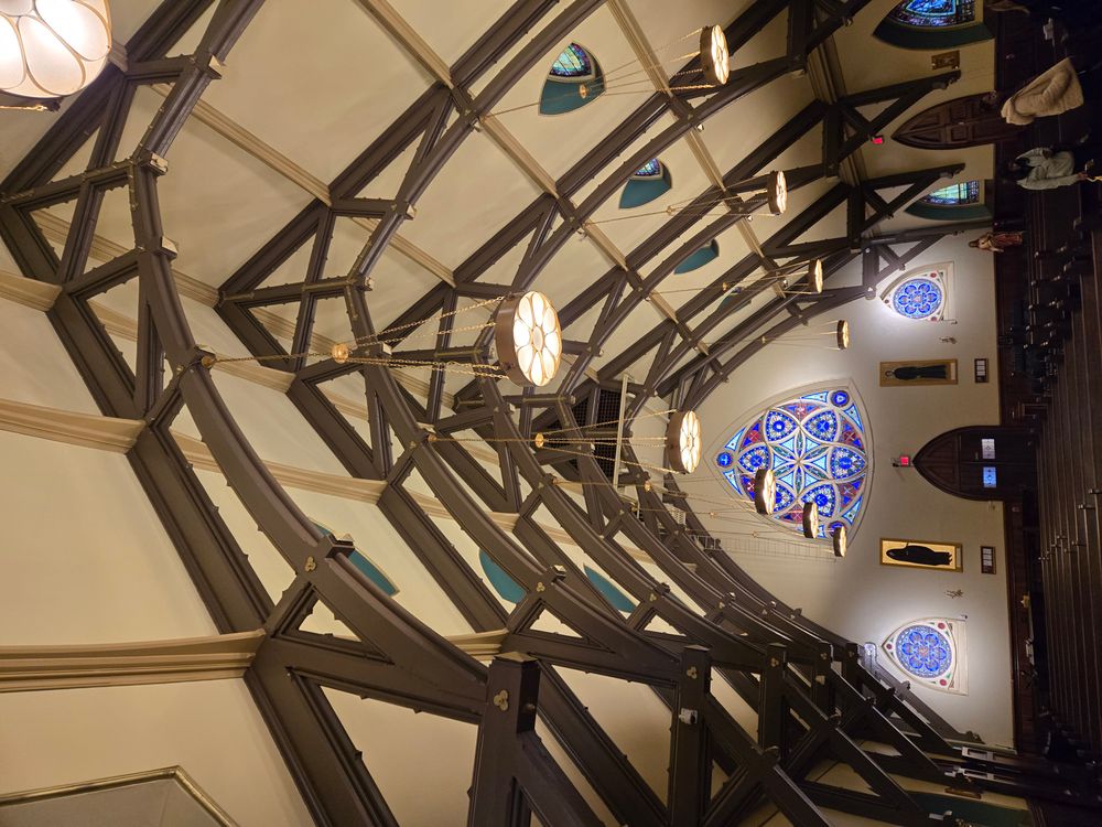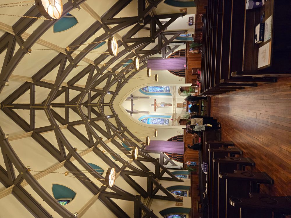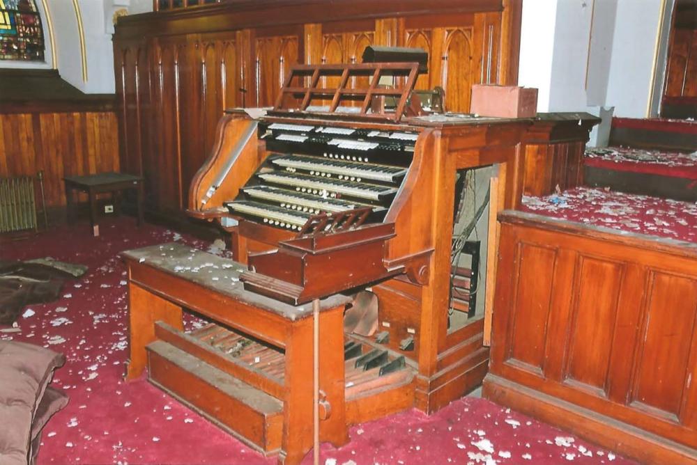 Updated through online information from Jim Tartella (April 13, 2025): I visited this church on 4/12/2025 for the 5th Anniversary dedication/organ concert. (Building was rededicated on 9/15/2019 as "Chapel of Christ the King" of King's College, Wilkes-Barre.) Pipe organ is no longer there although it is believed that some of the pipes may still be in the chambers and ceiling. Building has been completely renovated by the college and converted into a Catholic worship space. The old console was removed and has been replaced with a 3 manual Viscount. Speaker units are in the two pipe chambers on either side of the altar.