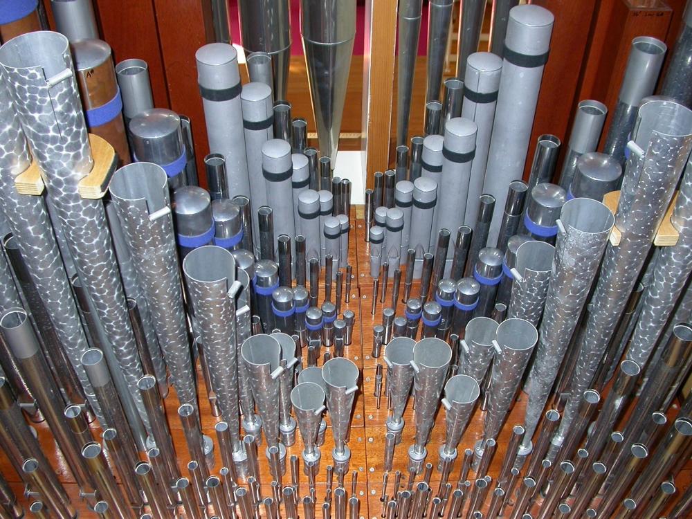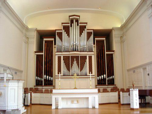 Identified through online information from Thomas Brown. -- The organ received a new Peterson 99-level combination action in 2003. It also received a revised Swell Mixture that year, lowering the pitch of the stop from a Zimbel-type mixture to a lower-pitched, more usable mixture. In 2010, the Swell 4' Flute Ouverte, which always suffered from serious tuning problems due to its scale and reaction to its placement on the chest, was replaced by a more narrow 4' Flute harmonique. Finally, the Swell 16' Basson stop was converted from a half-length stop throughout to a full-length stop, beginning at note 15. Sometime in the mid-1980s, two Walker digital 32' stops were added to the organ. Otherwise, no changes have been made to the instrument's voicing.