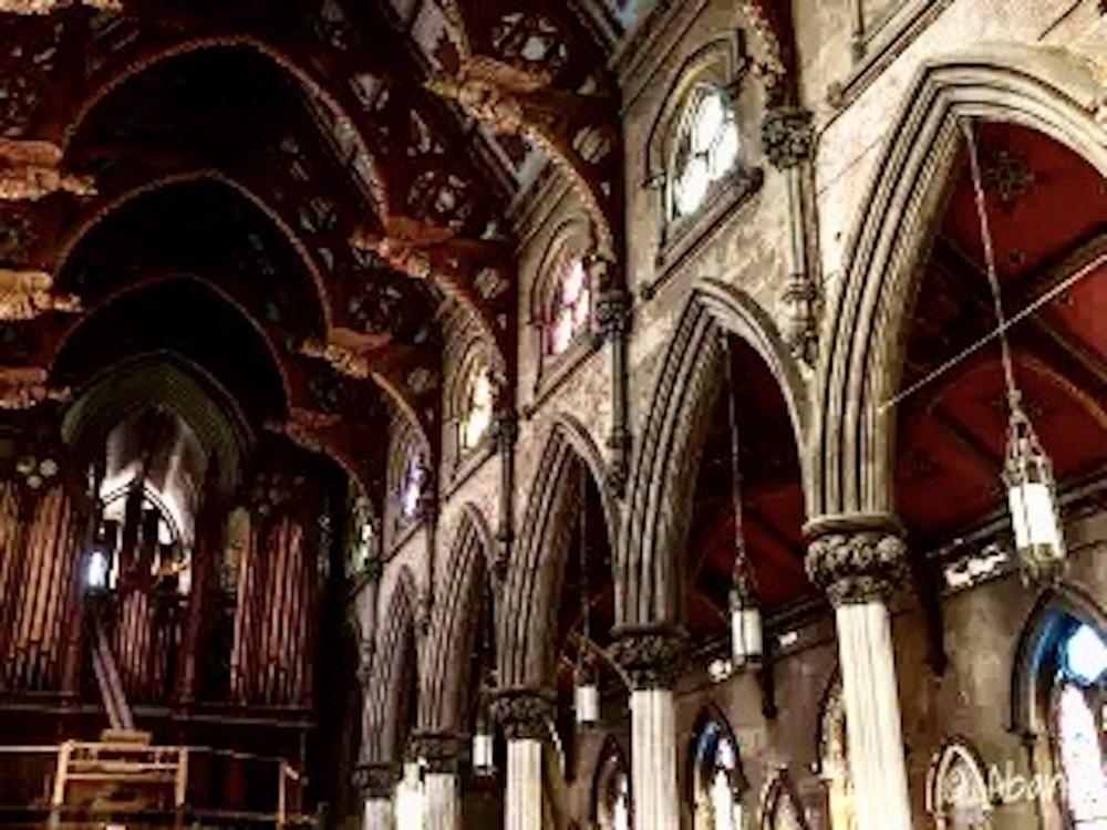 Updated through online information from Scot Huntington: The original Simmons & Willcox failed mechanically shortly after its construction and was rebuilt by Henry Erben. This is the instrument that was substantially rebuilt and enlarged by Odell as an essentially new instrument mechanically, while incorporating many old ranks. The monumental church designed by Patrick Keely closed in 1994, and has changed hands several times since, with an equal number of aborted plans for its multi-million dollar restoration and reuse, including such diverse plans as a brewery, arts center, and mausoleum. In 2013 the building was deeded back to the city of Albany, with no clear plan for its future or controversial preservation. The building was stabilized from imminent collapse in 2007, but remains in severely debilitated condition. The Odell has been subject to some vandalism since the church's closure, but is believed to be still mechanically intact. The massive 1859 Simmons & Willcox 32' open wood Diapason is extant and can be glimpsed through the broken windows of the tower. An examination of the Odell is needed to determine how much Simmons and Erben pipework, if any, may still remain.