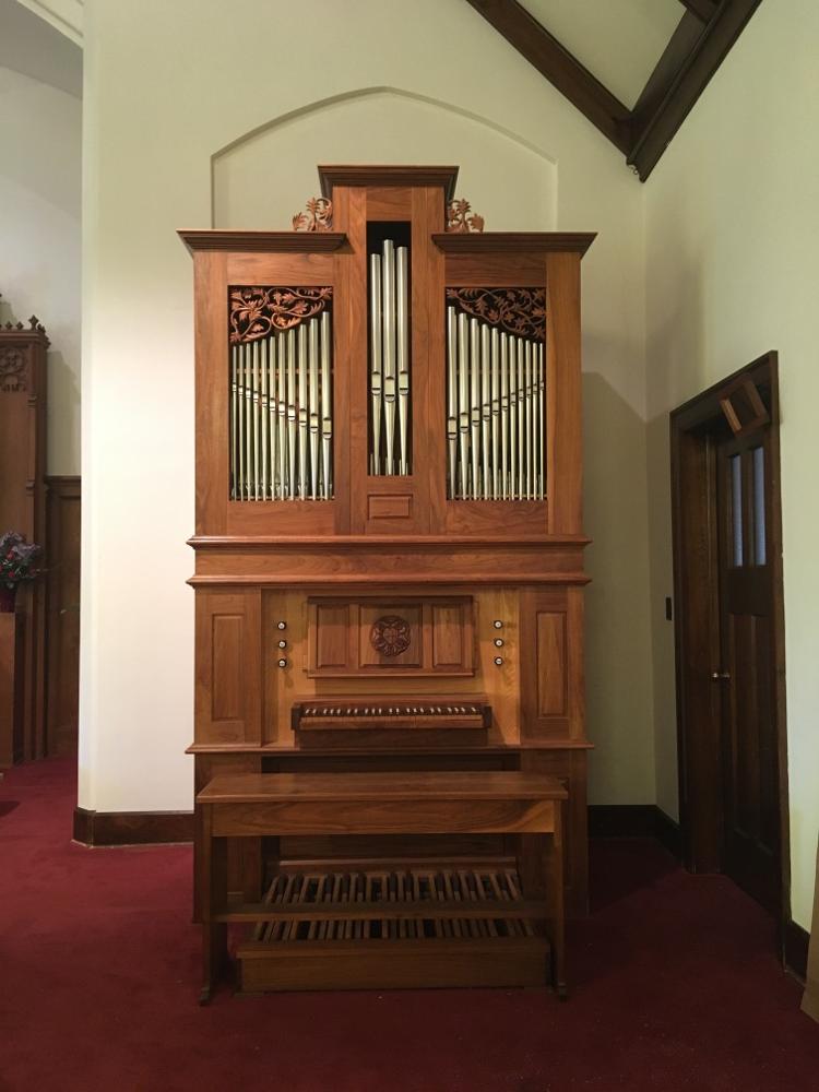 This entry describes an original installation of a new pipe organ. -- Identified by James R. Stettner, listing conversations with this person as the source of the information: John Miller, organ builder - who removed the organ from the church. The church building was sold to Temple Refuge Church who does not need the organ. It has been removed to safe storage in September 2019 by John Miller of John J. Miller Mechanical Organ & Clock Works.