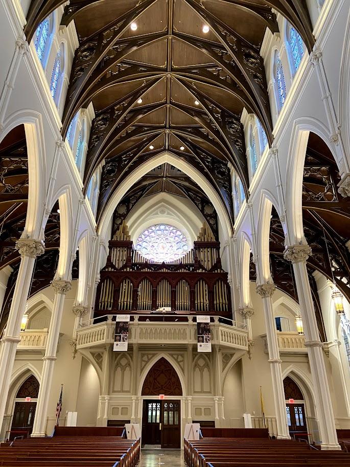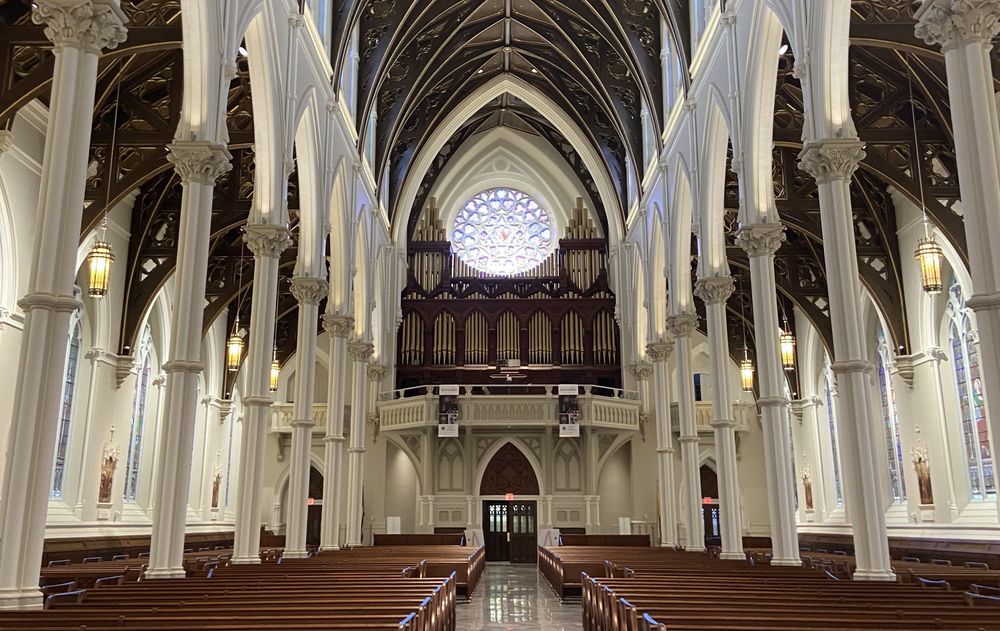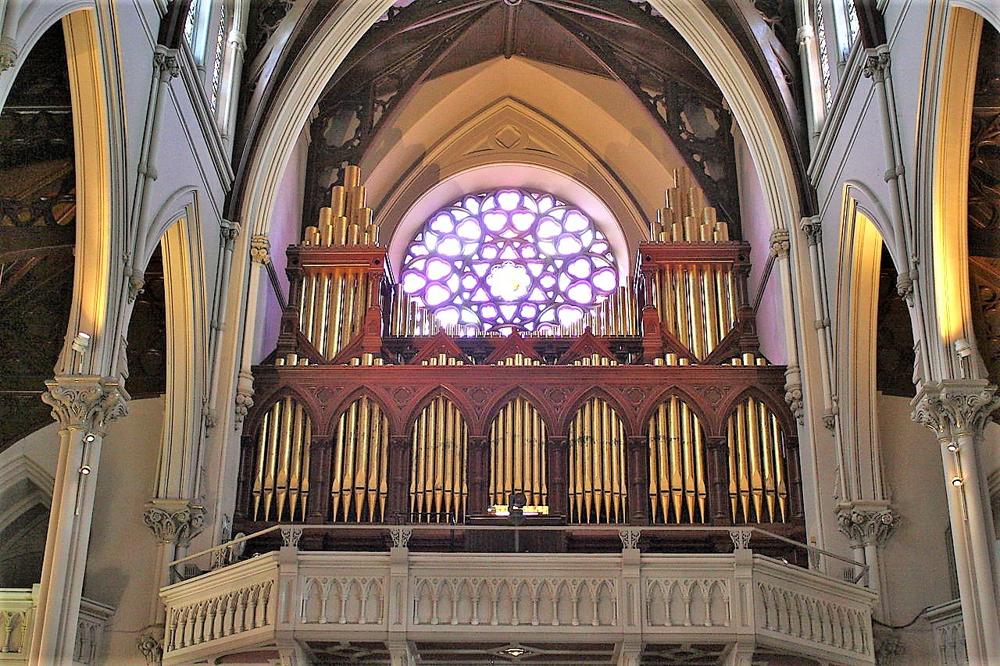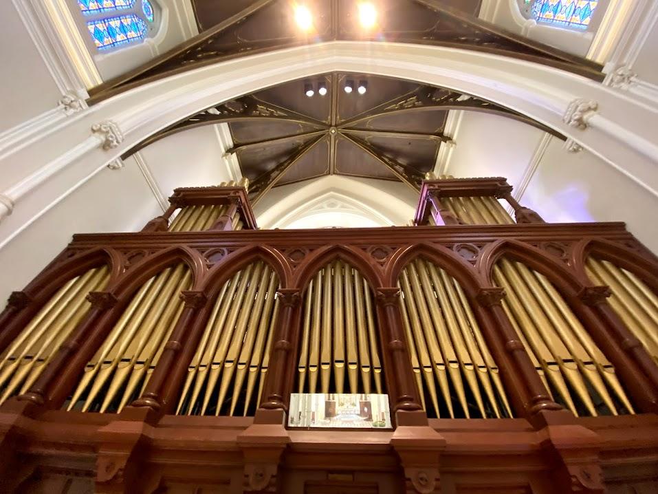 Almost entirely tonally unaltered from 1875. The only exceptions are the Swell 8' Quintadena, which from tenor C up has been replaced with Salicional pipes tuned as a celeste with the original Hook and Hastings Salicional. Also, the Choir 8' Rohr Flute has been replaced by Andover with pipes scaled to match the Rohr Flute in the Hook and Hastings at St. Joseph's Cathedral, Buffalo, NY.