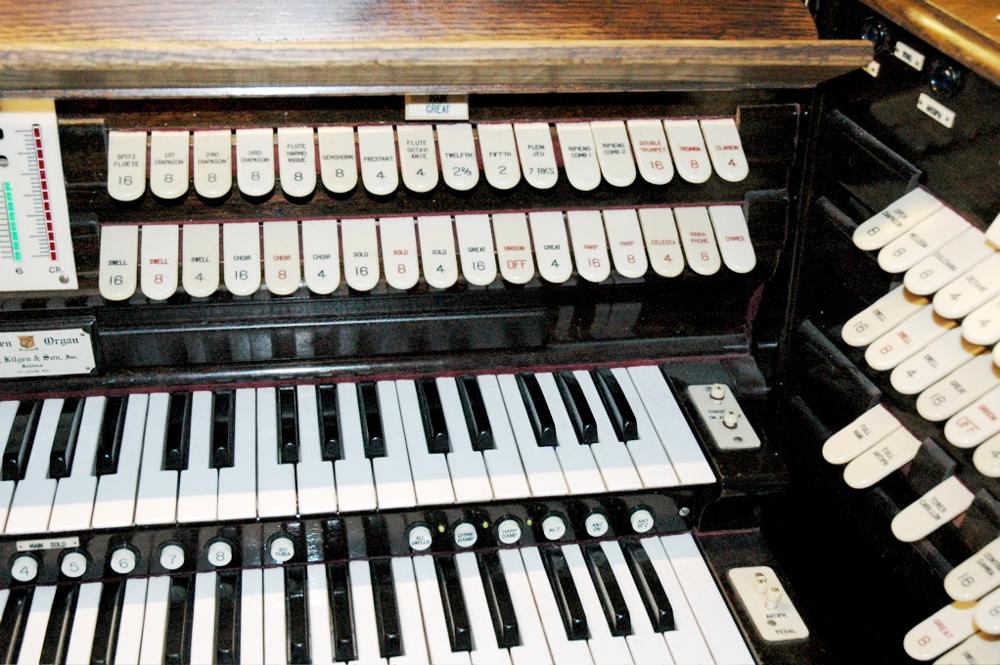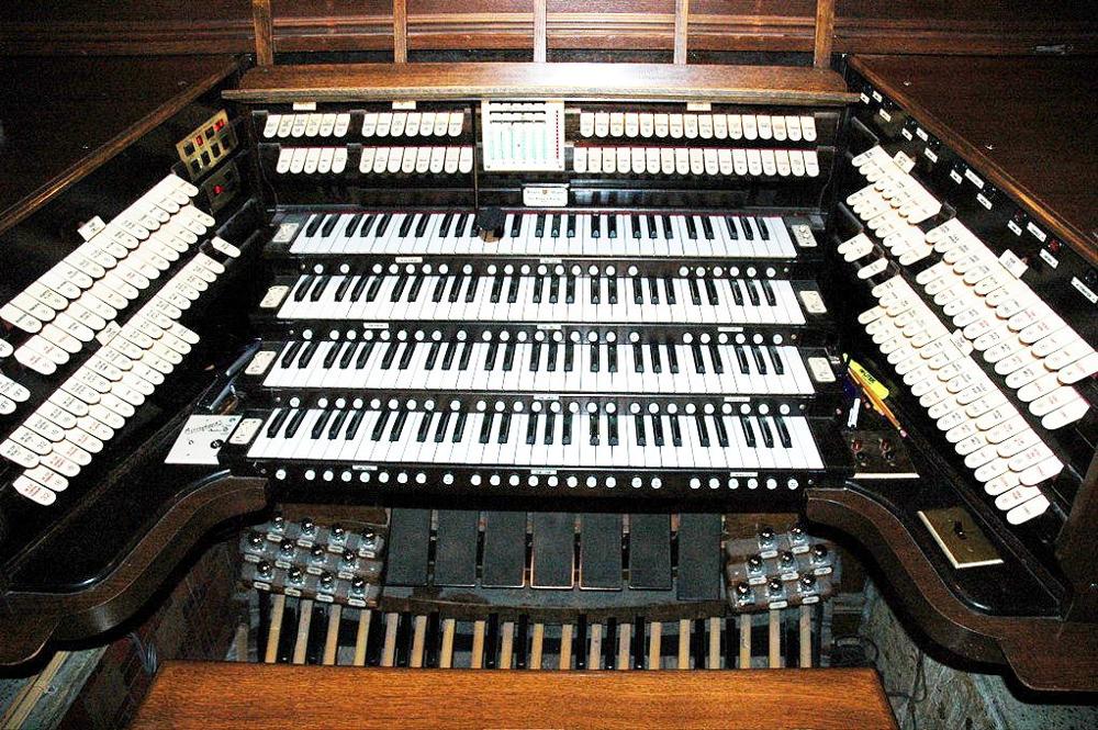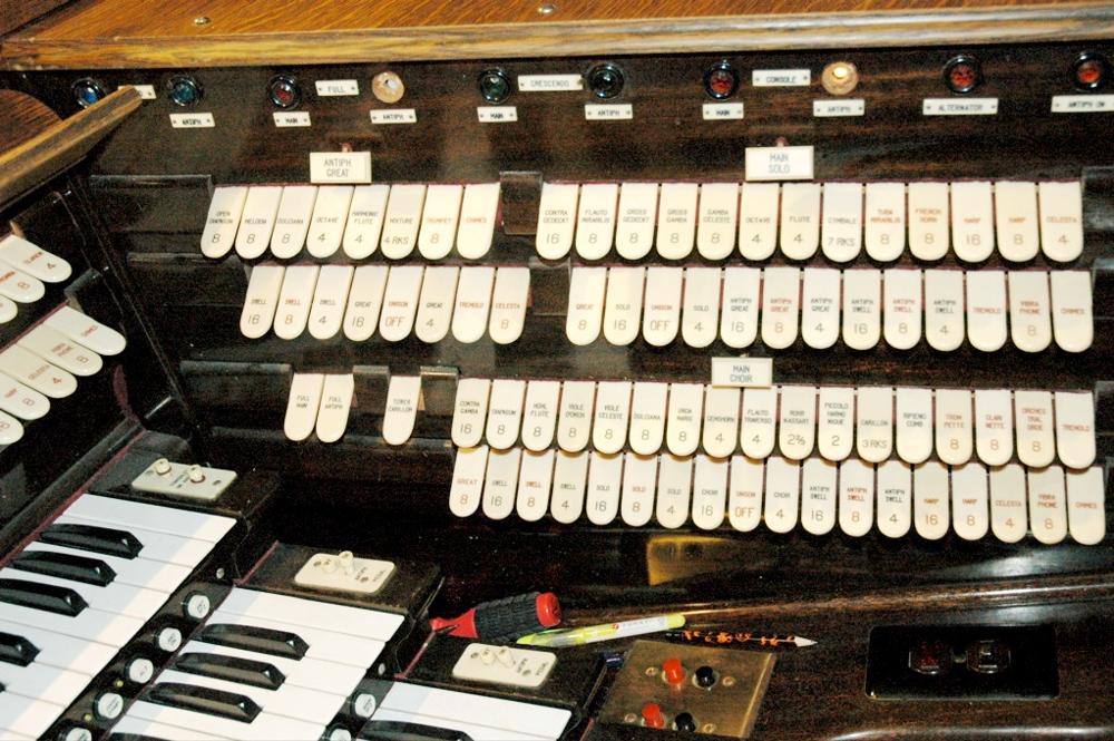 Two 4-manual consoles controlling Main and Antiphonal organs. To be restored 1998.