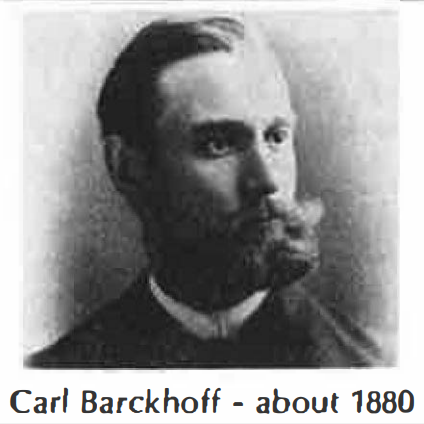 Carl Barckhoff Sr. Born 1849 in Wiedenbrück, Westphalia, Germany; Son of Felix Barckhoff, brother of Lorenz Barckhoff; father of H. C., (Henry Carl), Carl Jr., Felix (II), and Paul Barckhoff.