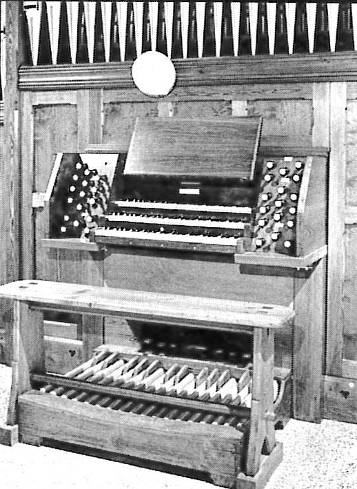 The original Pedal Open Diapason 16' was unusable, and the present set is from a 1911 Hann, Wangerin & Weickhardt organ originally in Sheboygan. The