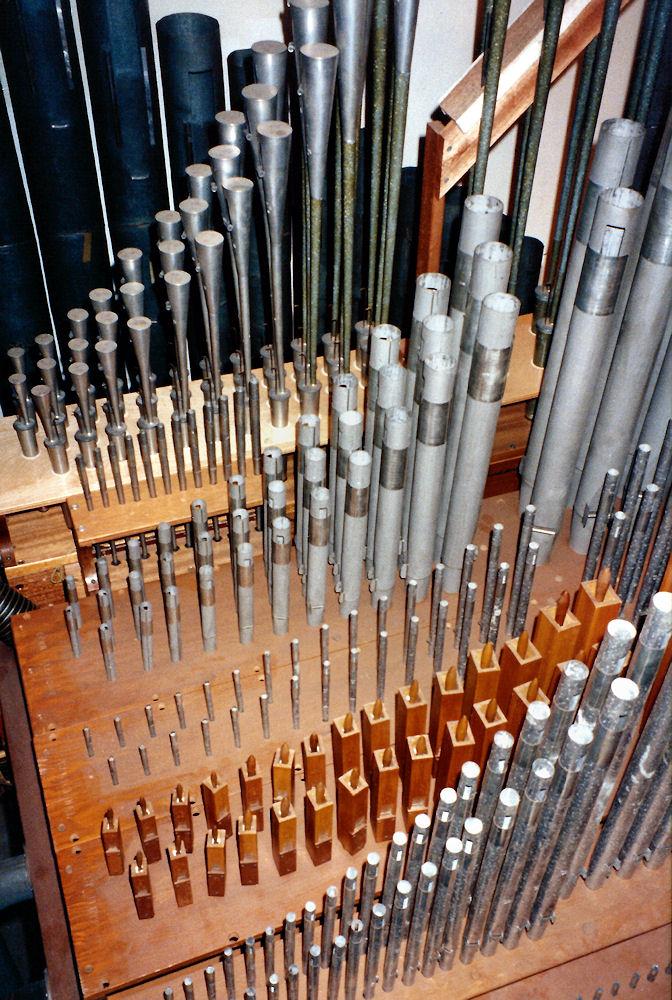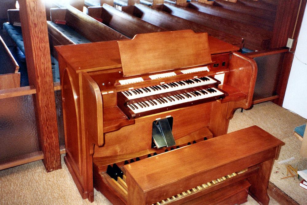 Updated by Sean Haley, who maintains the organ. The original console was removed in 2017 and the organ was interfaced with a low cost Rodgers digital instrument and turned in to a hybrid. It is presumed some of the speakers were placed in the chamber. The long term prognosis of the pipe voices is questionable as the chests are due for releathering and occasionally prone to cyphers.