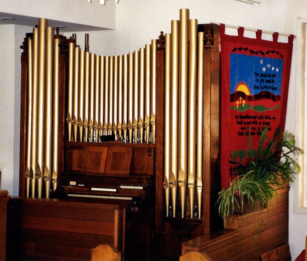 Updated through online information from James R. Stettner. -- Installed by church's Organist/Music Dir. - Jim Brumbaugh - assisted by parishioners. It is a much-traveled organ: