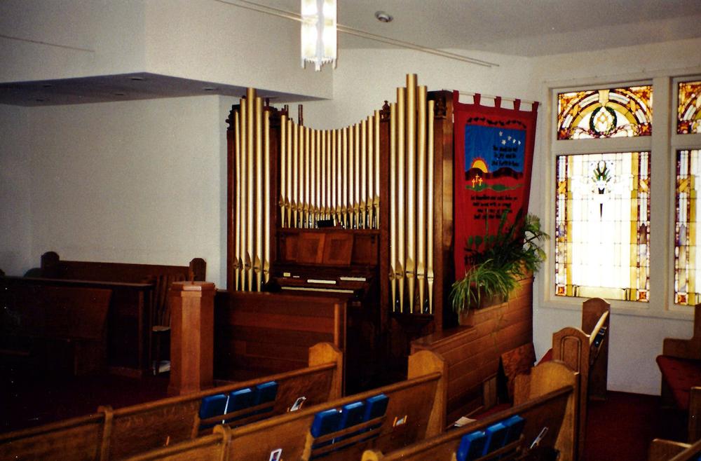 Identified through online information from James R. Stettner. -- Originally built for W. H. Hart who owned some kind of store in Philadelphia. Acquired before 1915 by Portland, Oregon resident Asa Lovejoy. Shipped around Horn to Portland. 1930s relocated to Portland area funeral home. Shifted to another funeral home in Portland after a merger. Ca. 1978 made available for sale. Sold to Bill L. Watson of Colonial-DeWitt Funeral Home in Walla Walla, Washington. Ca. 1984 purchased by Vashon Presbyterian. Installed by parishioners. Some releathering done by former Moller rep. Charles Rich of Orting, Washington. Removed in June 1999 to Meadway & Stettner shop in Monroe, Washington for restoration. Reinstalled in February 2000.