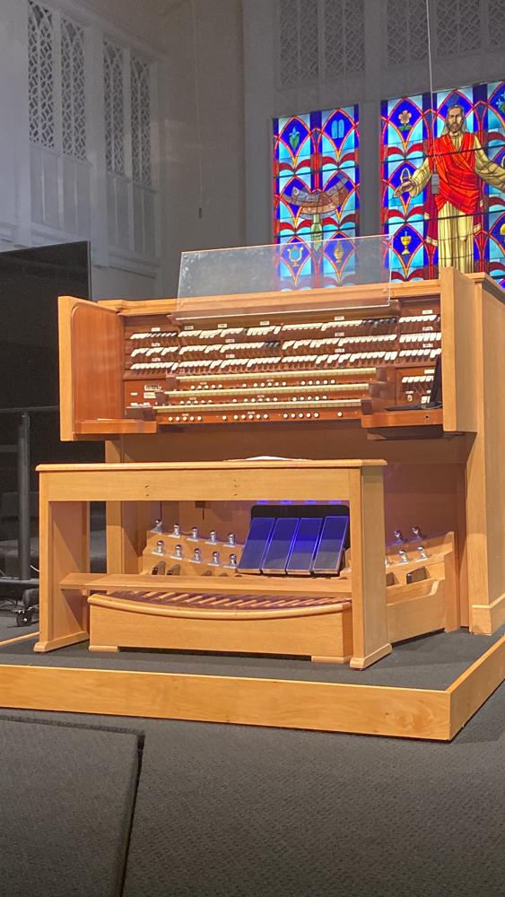 Updated through online information from James R. Stettner. -- This was the addition of four new pipe ranks (Saxophone, Kinura, Trumpet, Orchestral Oboe) and windchests. The organ will receive a new Uniflex relay system. The console will have added pistons. A complete toy counter has been added which will play from buttons in an added pull-out drawer. Second-touch contacts are being added to the Accomp. manual.