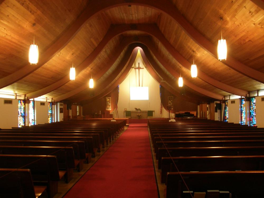 Updated through online information from Stephen Hall. -- Organ is still in rear gallery, but choir relocated to chancel. Nave is short enough to allow choir to sing with organ, but they also have a piano in the chancel.