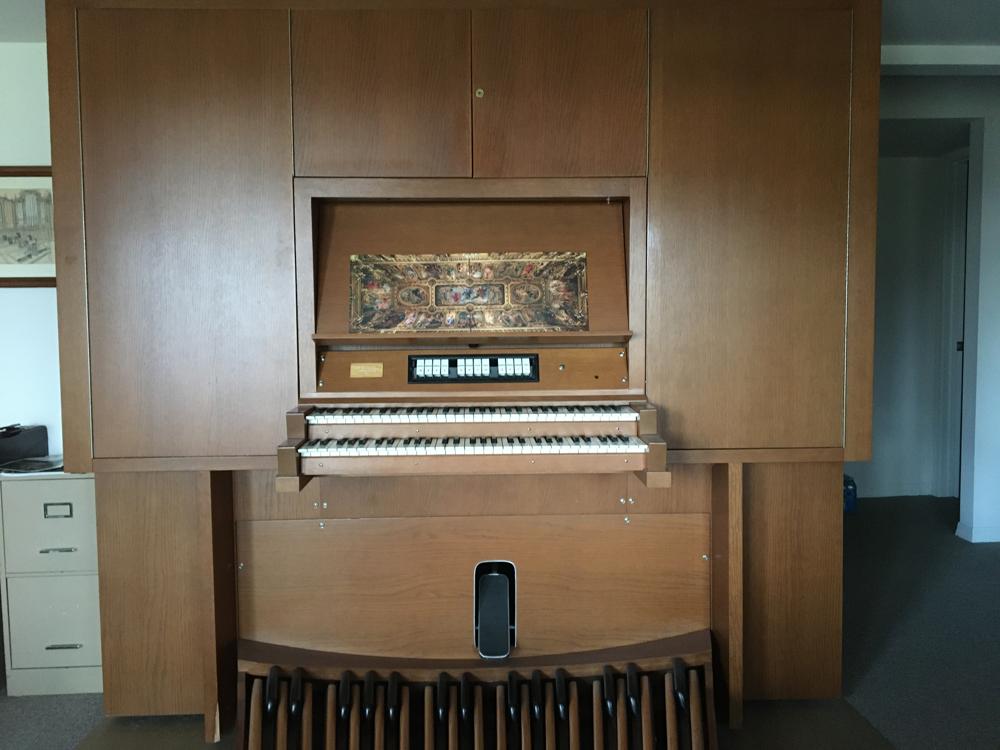 Identified through online information from James R. Stettner. -- The organ was originally built for the Munster, Indiana residence of Daniel L. Galvin after he won the Indiana State Lottery. The organ was reportedly installed in his bedroom. It was purchased by Gerry in 1993 and moved to his home in Greenberg, Pennsylvania. When Mr. Kaminski moved to Yakima in 1995, the organ was moved along and temporarily placed in storage in the garage. It was re-erected in his home in March of 1996. The organ was originally entirely under expression. This was changed to an unexpressive Positiv-style instrument by removing the shutters and placing the pipes from the 4' Principal en facade.
